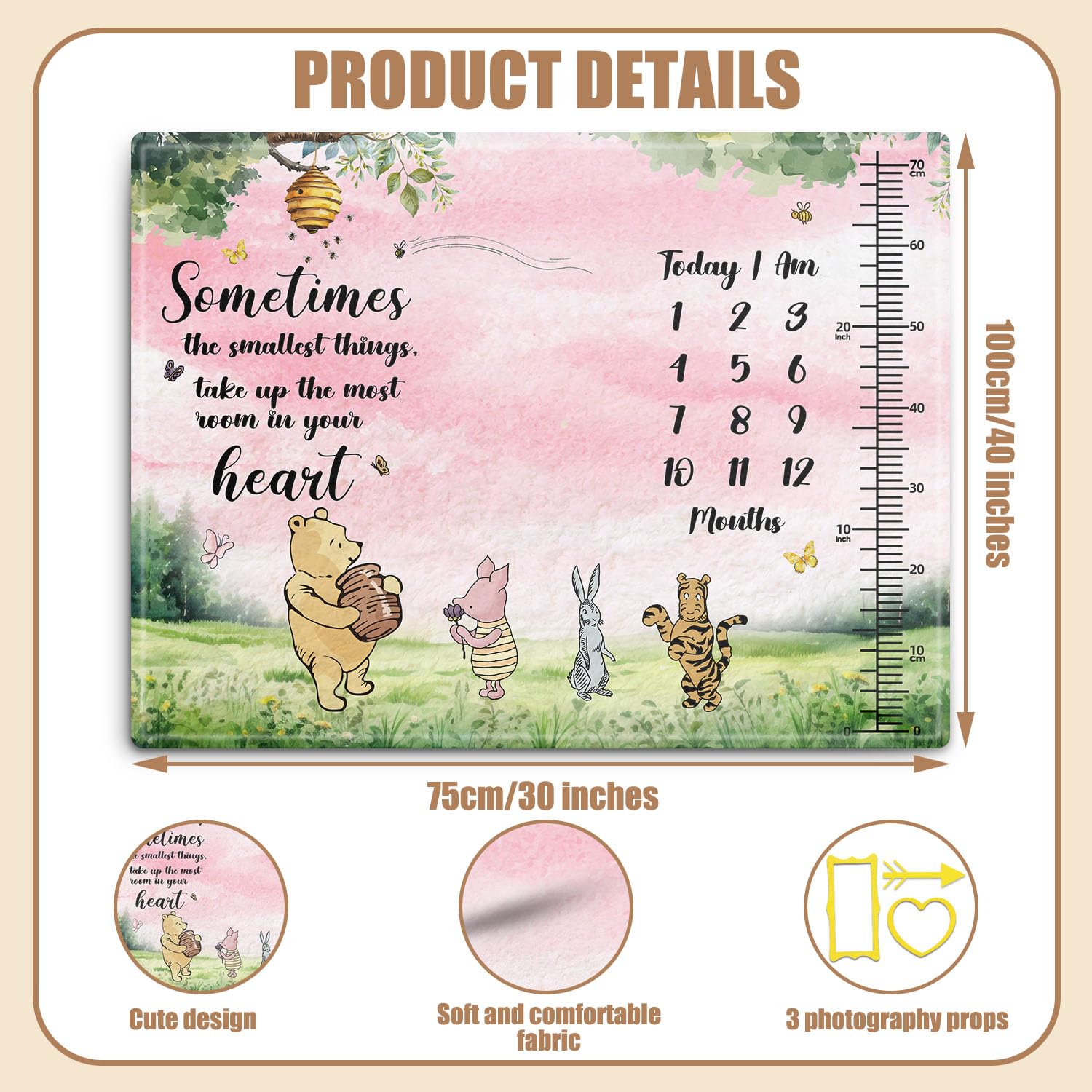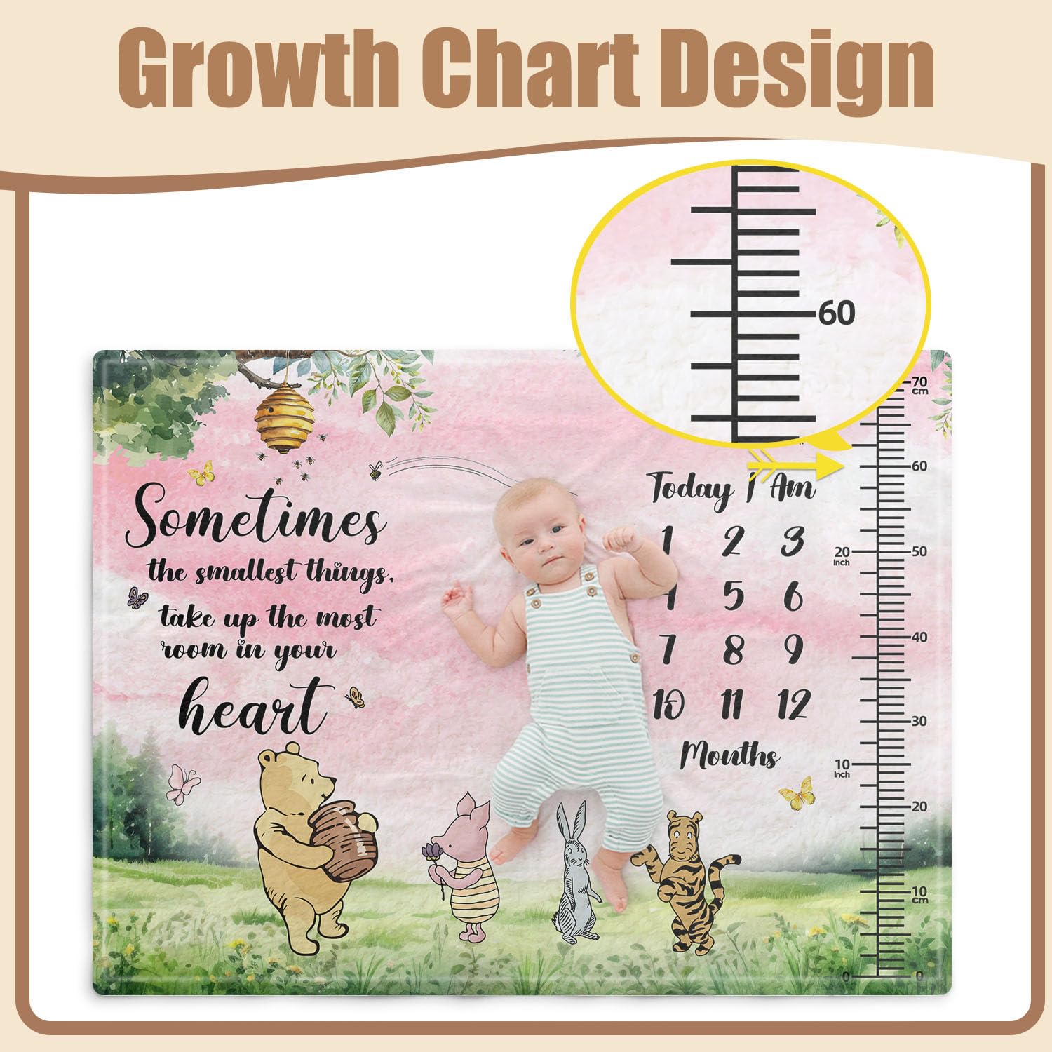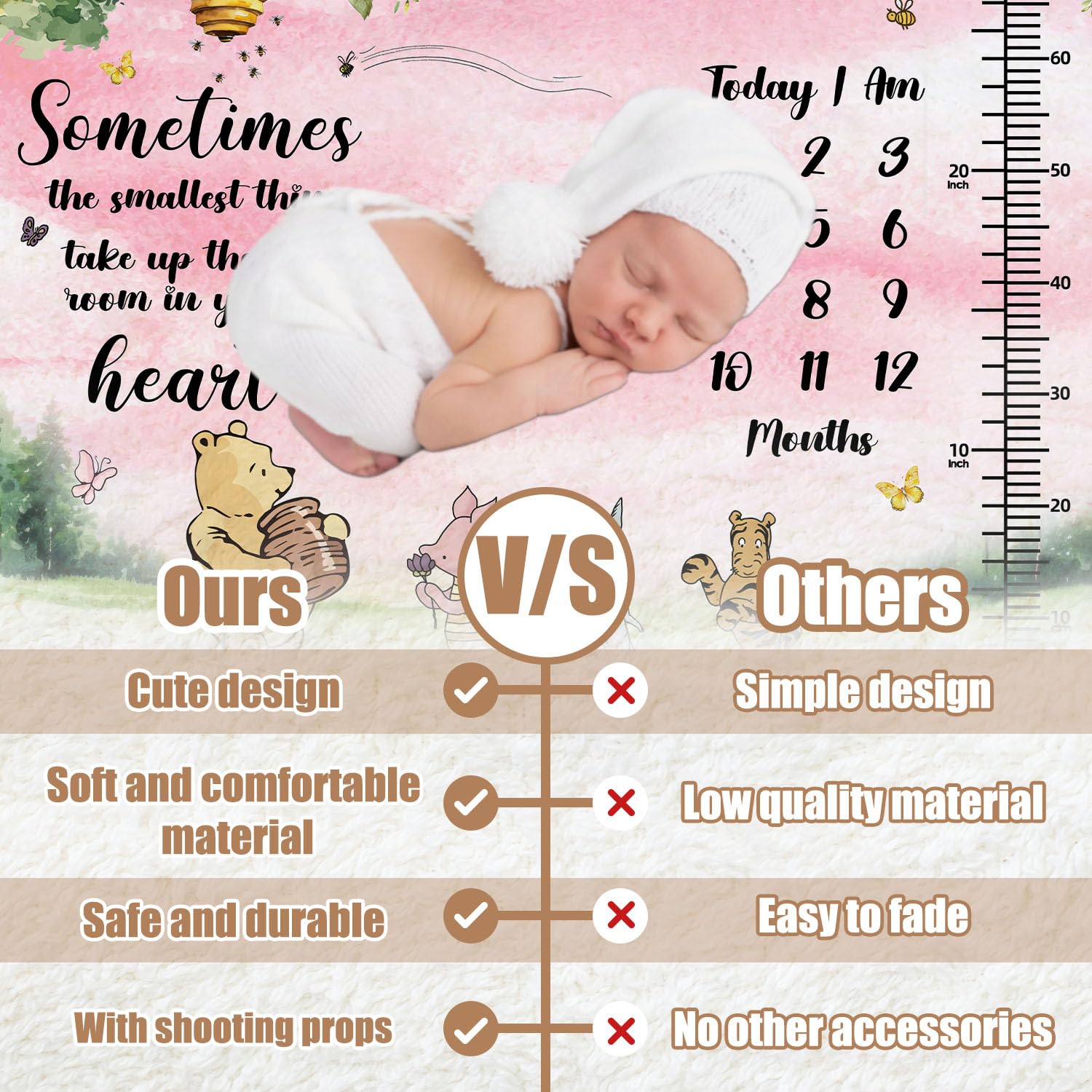Perfect Gift: This baby monthly milestone blanket features a cute Winnie pattern design and comes with Winnie quotes, suitable for recording your baby's beautiful moments and adding a touch of cuteness and playfulness to photos. It's also a surprise gift for prospective parents.