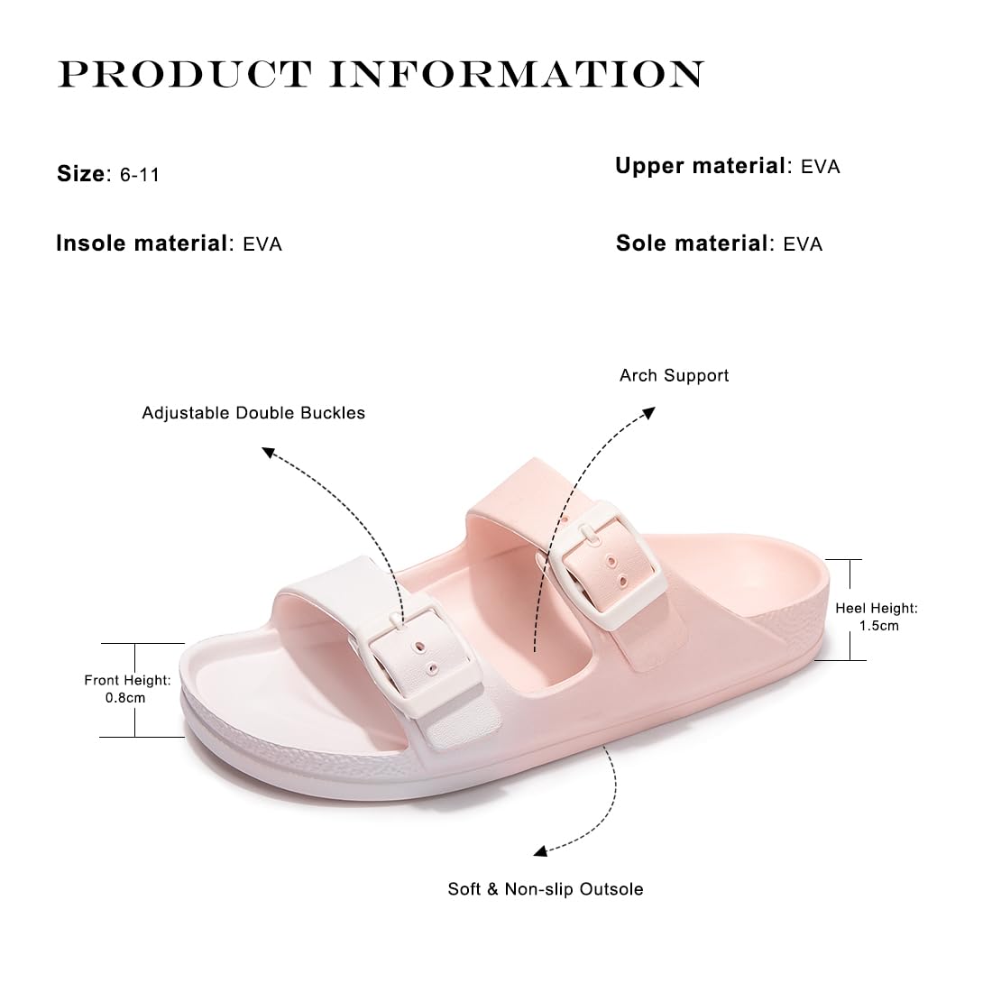 Custom Fit with Dual Adjustable Straps: The FUNKYMONKEY sandals women feature two fully adjustable straps that conform to the unique shape of your feet for a secure, personalized fit. To ensure maximum comfort and avoid returns, please check the size chart before ordering your new pair of womens slides.