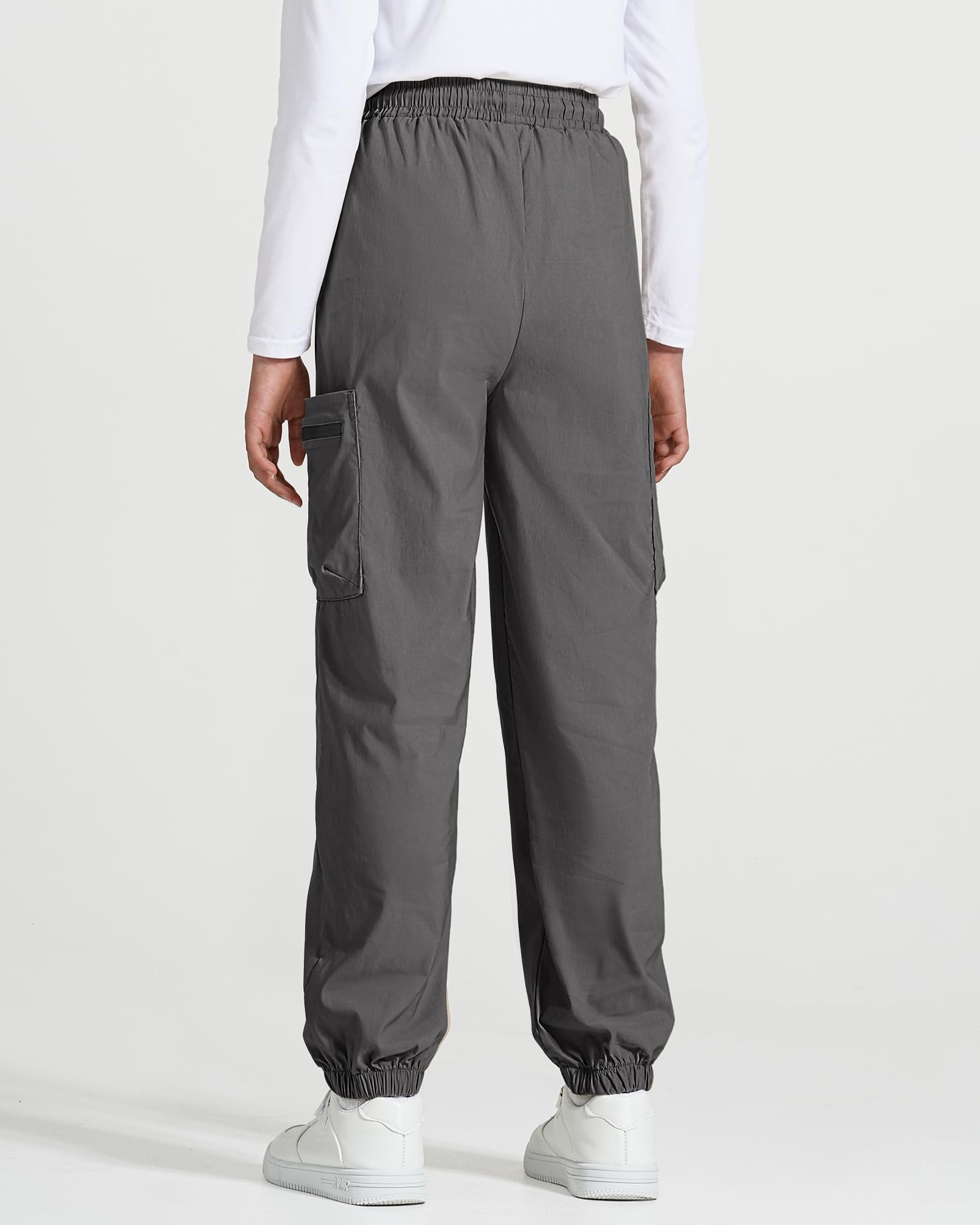 Boys Quick Dry Pants -- The athletic cargo pants are crafted with slight water resistant fabric that repels stains and light liquids and dry quickly to keep the body dry and comfortable all day long. The boys rain pants combine style and functionality, making them suitable for kids on the go.