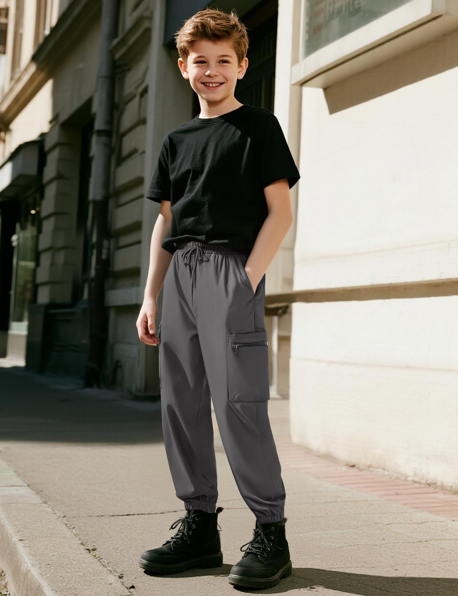 Multi Pockets Design -- The boys joggers have stylish and functional pocket design. Completing with two side pockets, two cargo pockets, two zipper pockets outside the cargo pockets. Offering convenient storage for small items that boys need to carry.