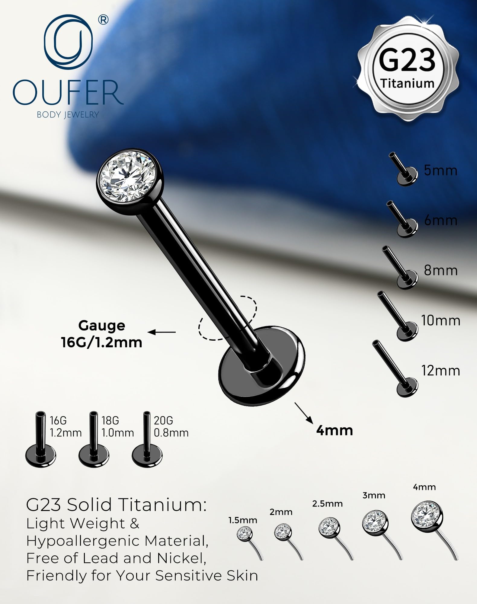 【4MM CZ Sparkle · Bold Statement Look】:The 4mm CZ bezel delivers striking brilliance—perfect for conch, lip, or cartilage piercings.