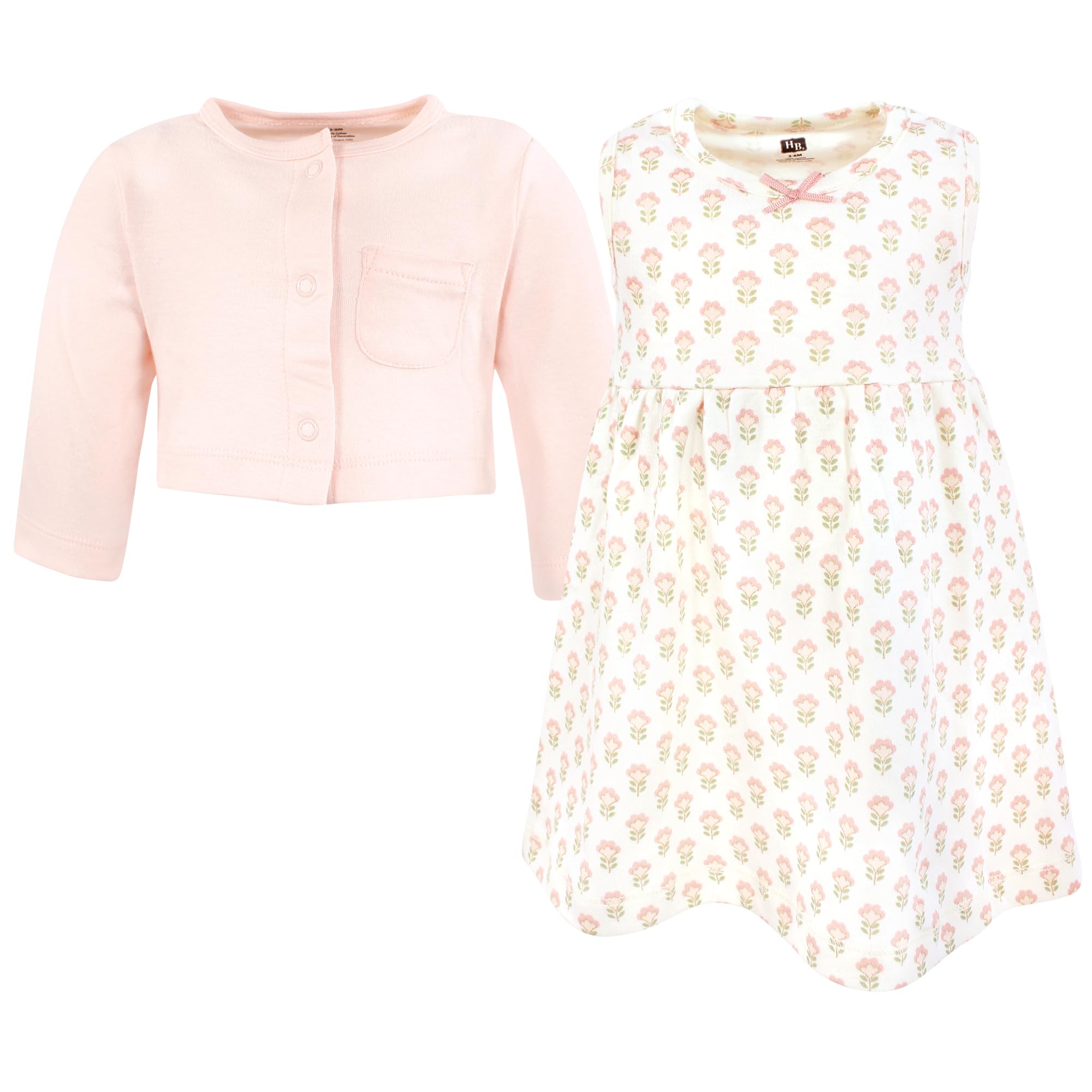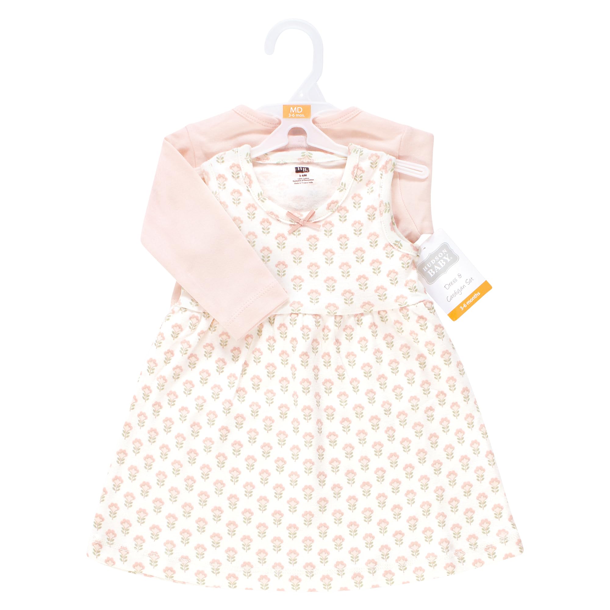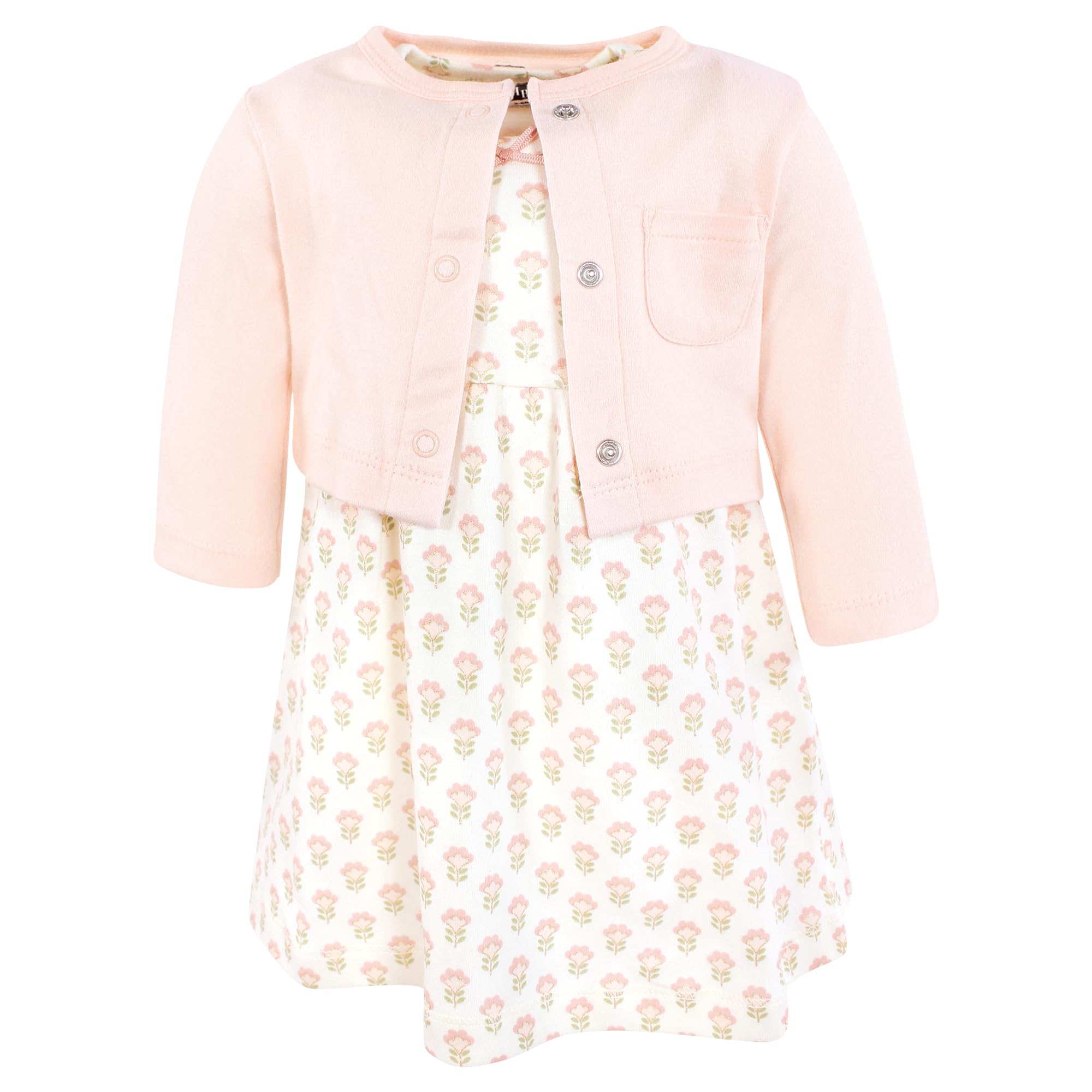 Description Hudson Baby dress and cardigan set is the cutest fashion outfit for your baby and toddler girl. Both dress and cardigan are made from super soft 100% interlock cotton. Our dress will keep your little feeling free and cool while the cardigan offers long sleeves for added warmth when needed. Our cardigan comes with snap closure for easy on and off.