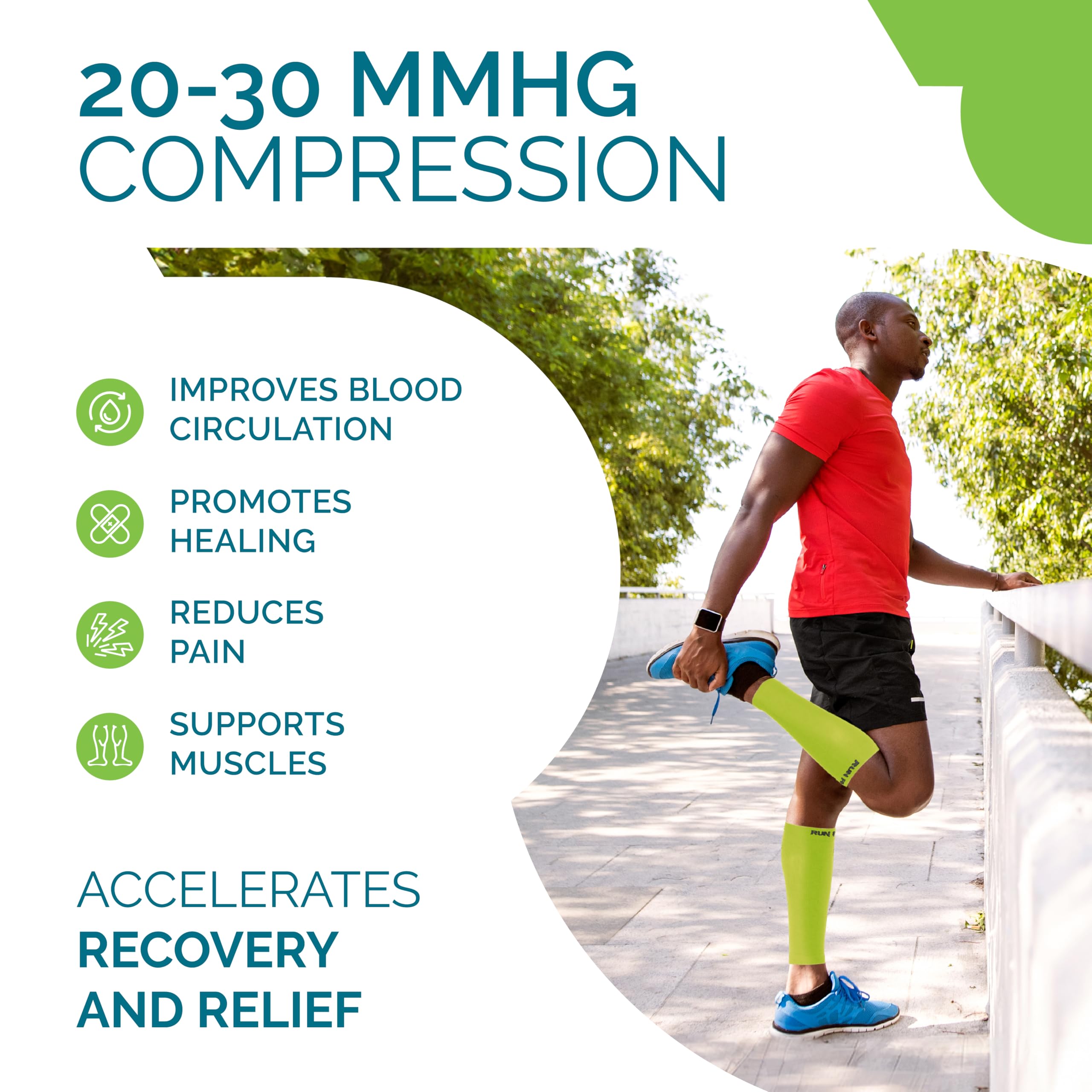 Professional medical compression stockings: The leg wraps have true graduated compression strength of 20-30 mmhg, improving performance while alleviating leg pain, swelling and allowing for faster injury recovery