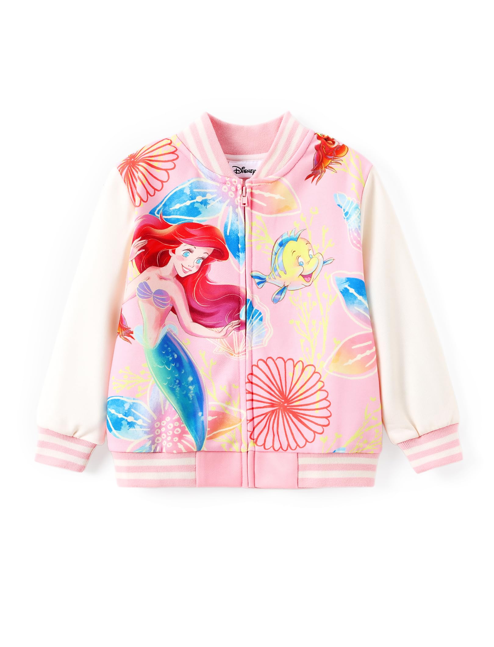 Disney Officially Licensed: Let your little ones step into the enchanting world of Disney with our officially licensed toddler varsity jacket! Featuring beloved characters like Disney's Elsa and Anna from Frozen, Disney's Belle, Ariel, Cinderella, Snow White, and Moana from the Disney Princess series, Disney's Mickey and Friends collection, and Disney's Stitch from the Lilo & Stitch, these zip up jackets are perfect for any young Disney fan