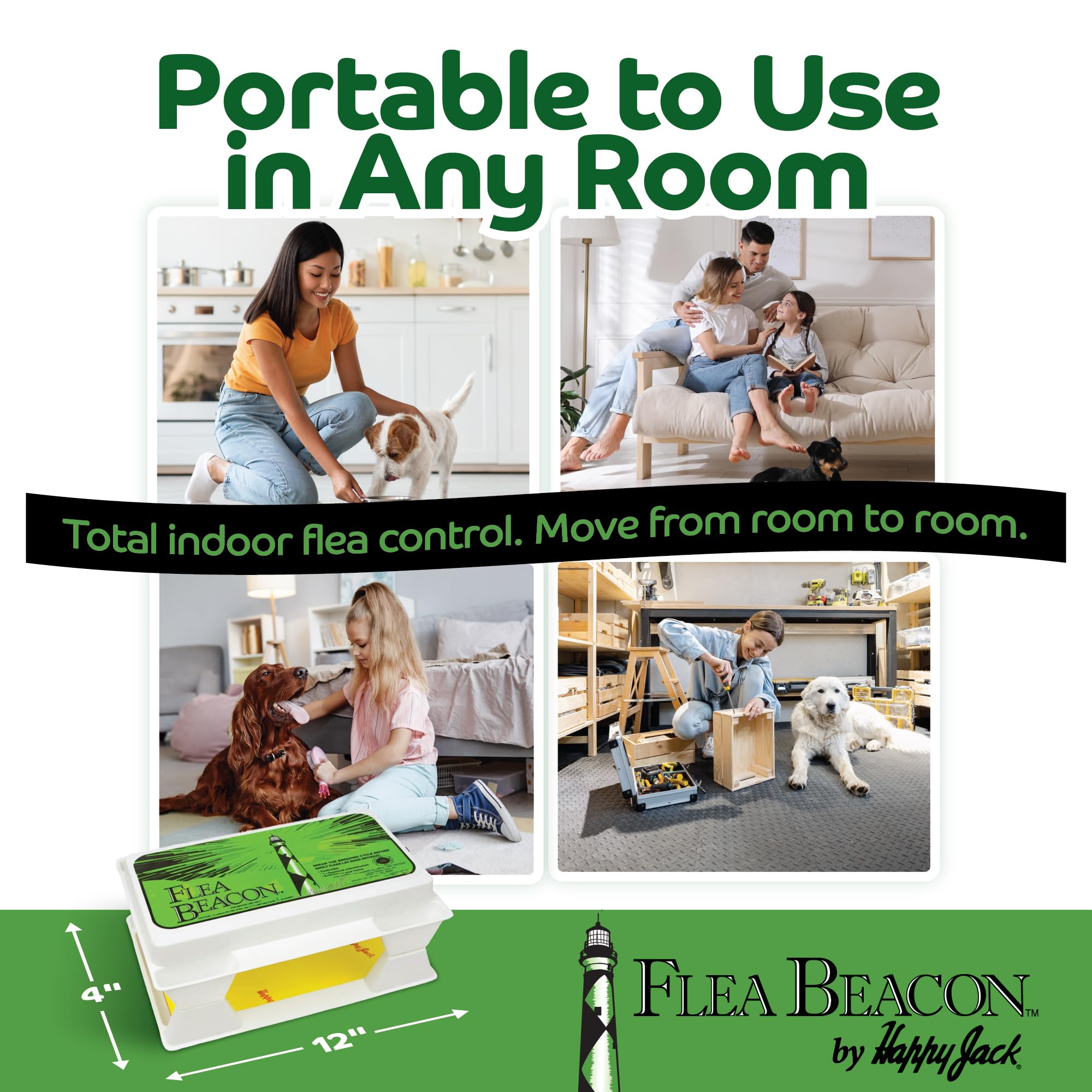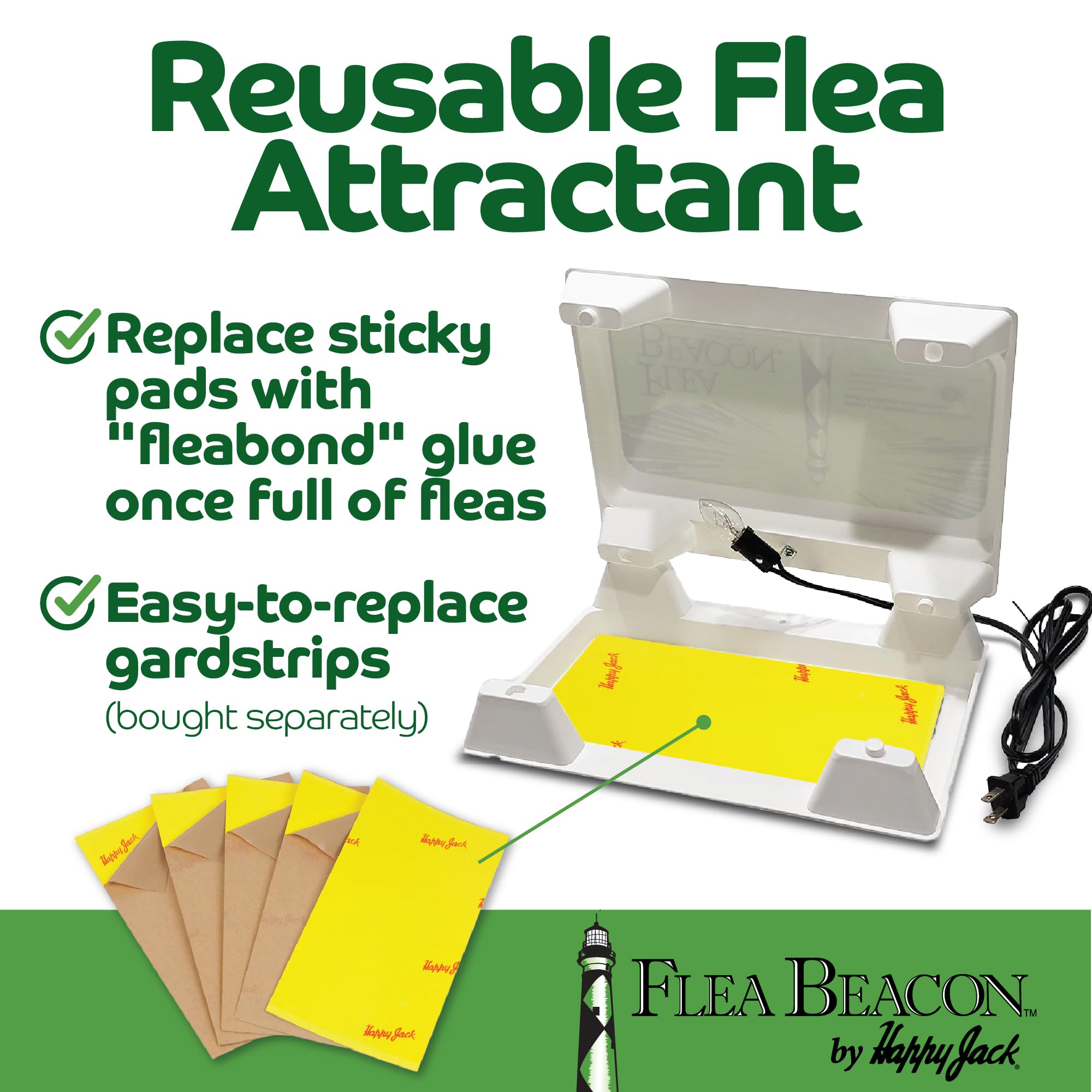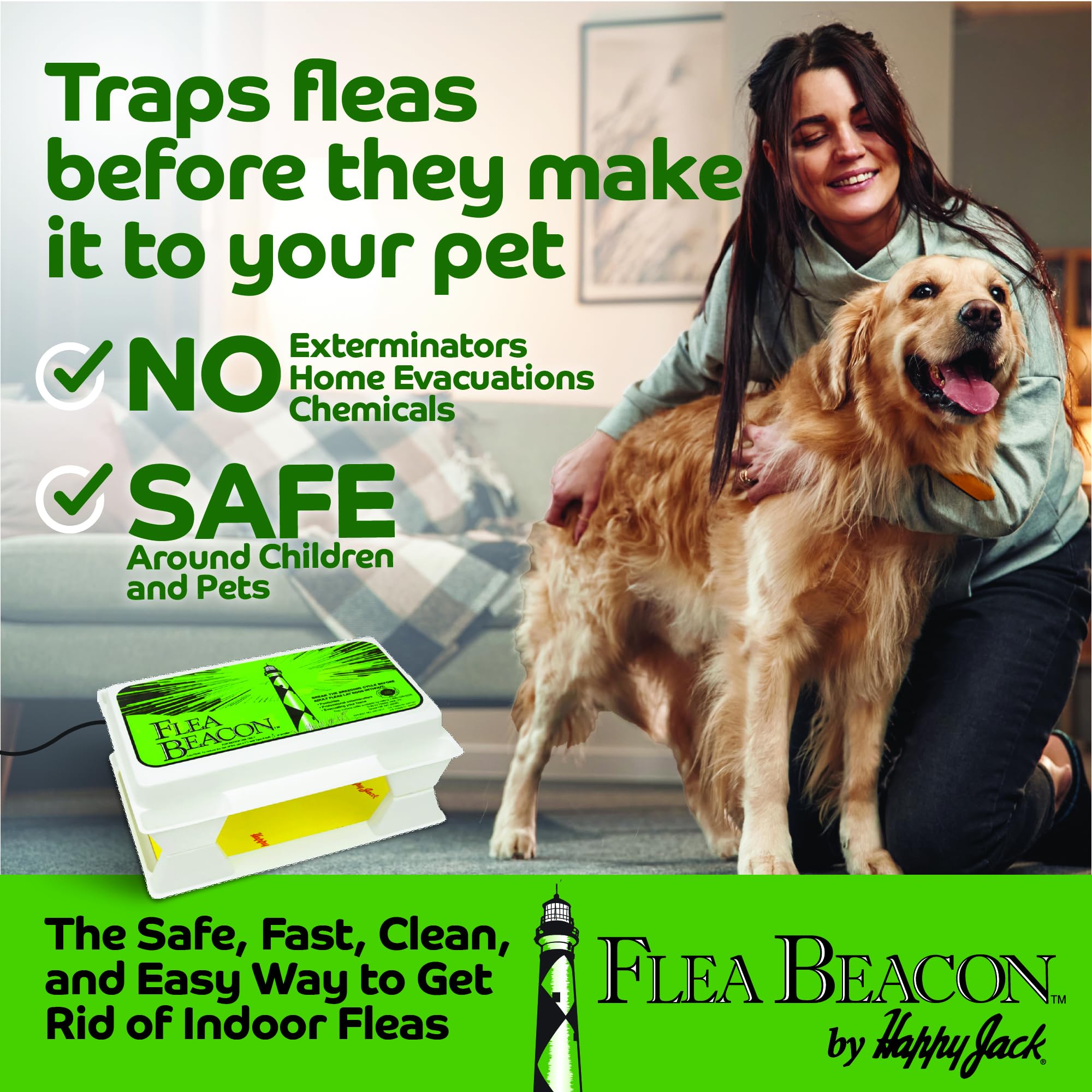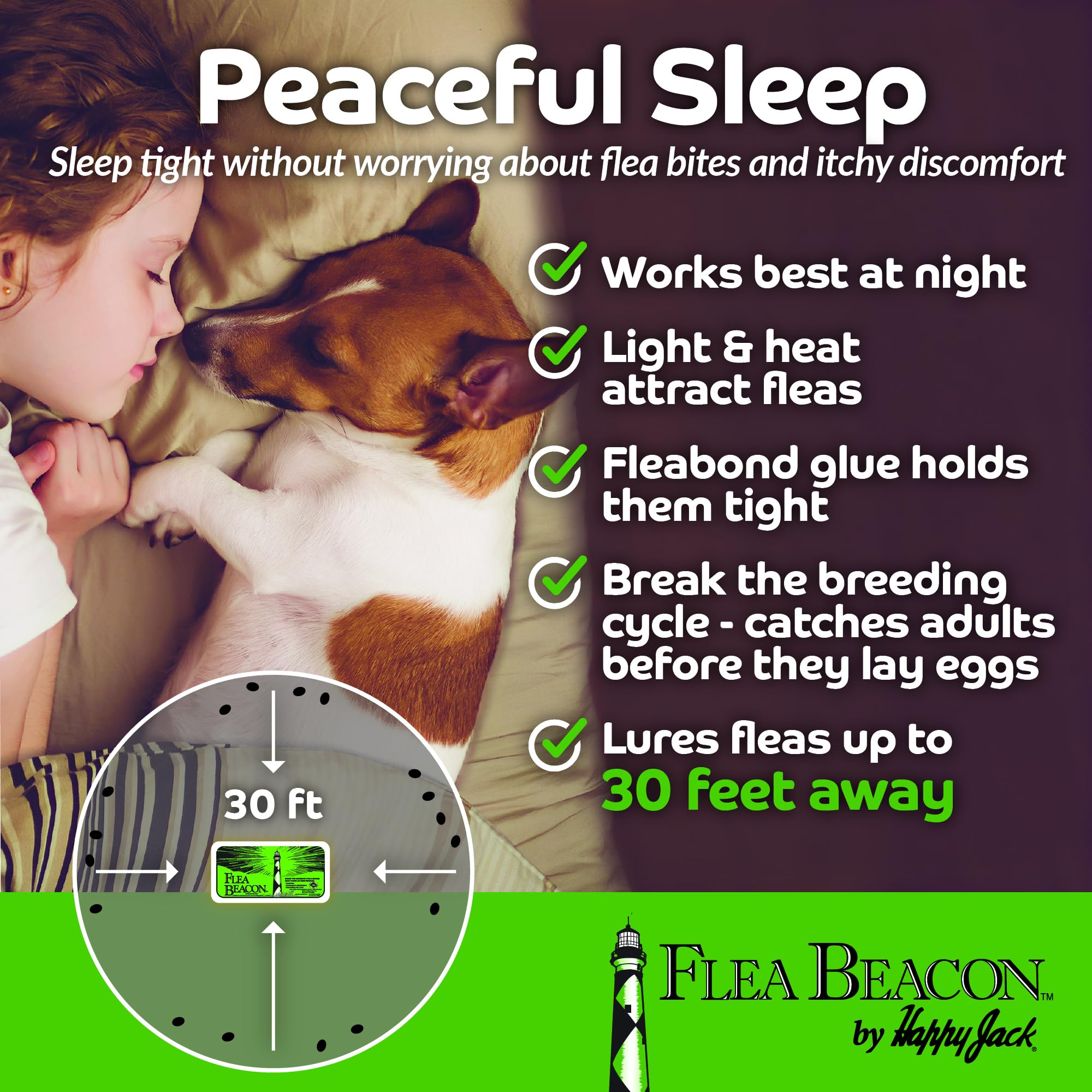 ELIMINATES INDOOR FLEA PROBLEMS. Fleas jump into the source of light, rebound into the catch tray, and get trapped on the sticky pad. Fleas jump in. They don’t jump out. Ever.