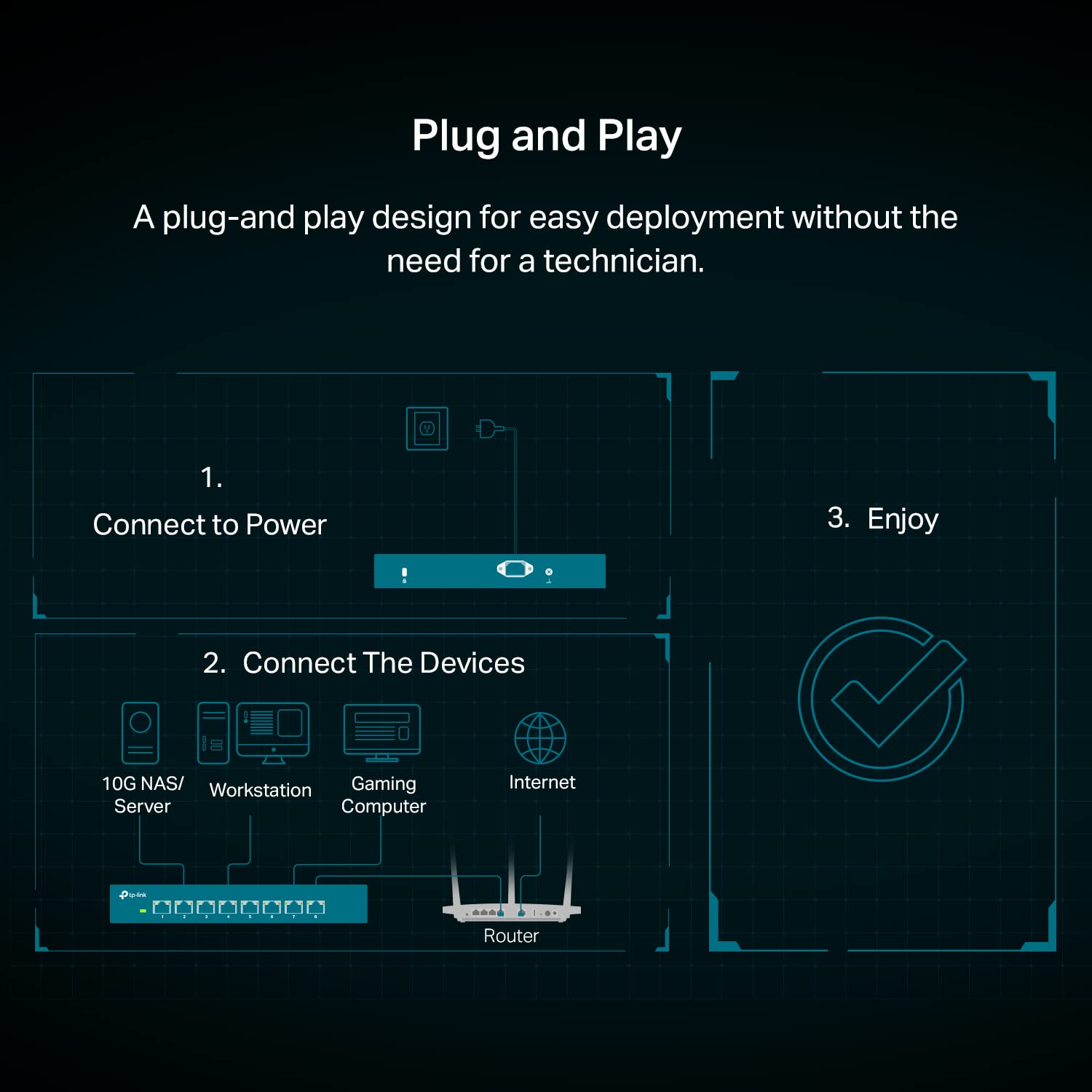 𝐄𝐢𝐠𝐡𝐭 𝟏𝟎𝐆𝐛𝐩𝐬 𝐏𝐨𝐫𝐭𝐬 𝐟𝐨𝐫 𝐋𝐢𝐠𝐡𝐭𝐧𝐢𝐧𝐠-𝐅𝐚𝐬𝐭 𝐂𝐨𝐧𝐧𝐞𝐜𝐭𝐢𝐨𝐧𝐬: 8× 10-Gigabit ports unlock the highest performance with 10G/multi-gig bandwidth and provide up to 160 Gbps of switching capacity.
