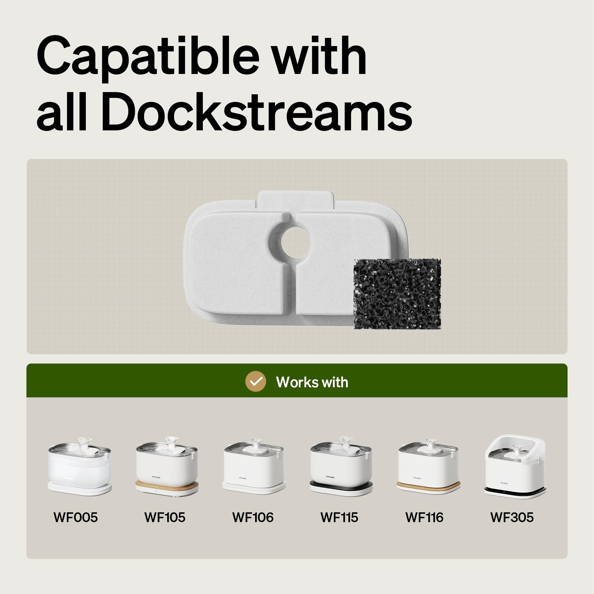 Compatible exclusively with PETLIBRO cat water fountain Dockstream PLWF106/PLWF116/PLWF105/PLWF115/PLWF005/PLWF305 (2.5L-3L).Off-brand cat fountain filters may cause leaks/pump failure in PETLIBRO automatic water dispensers.