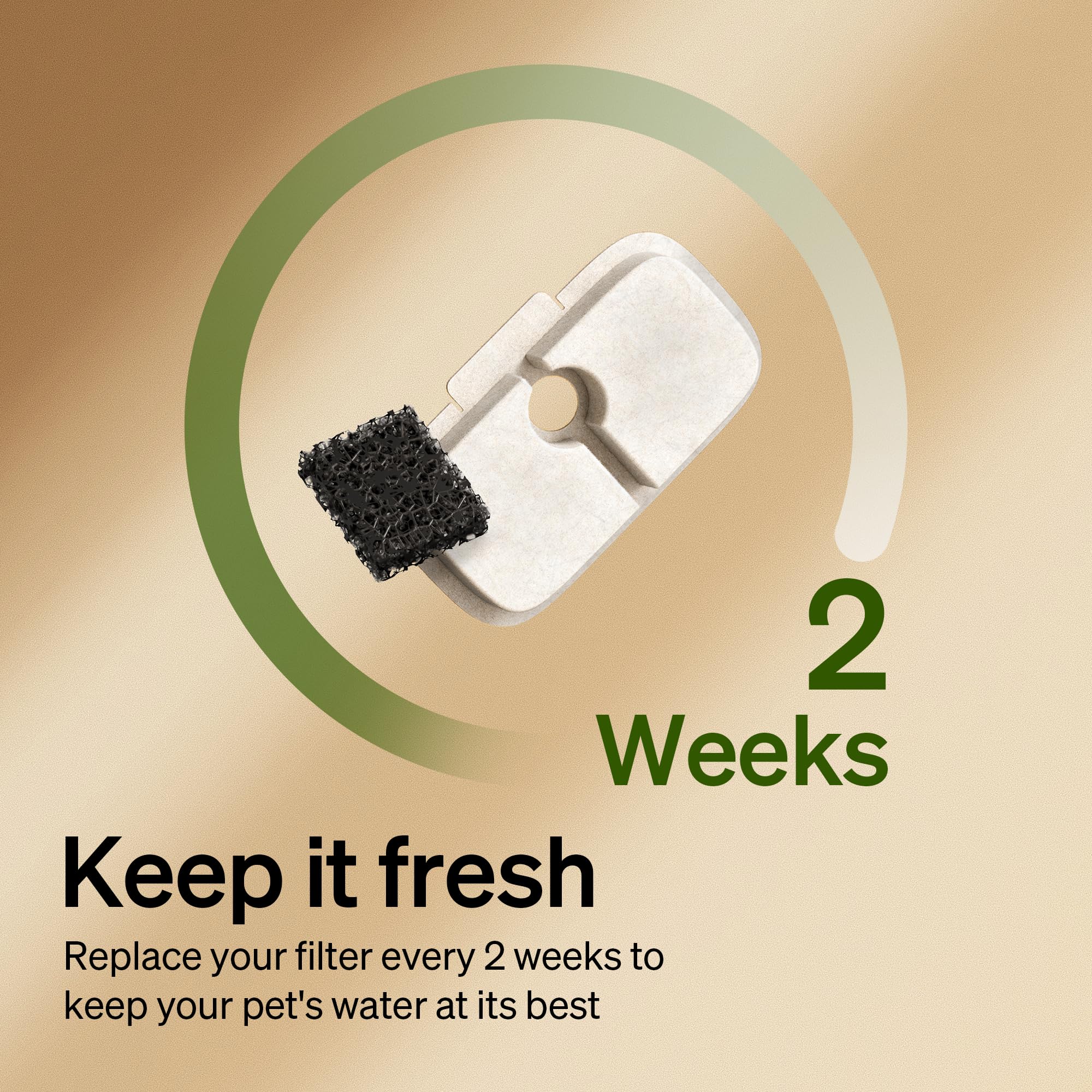 Easy to Swap and Maintain: No tools needed when changing cat water fountain filter - soak 5 mins, rinse 30 secs, swap in seconds. For optimal Use, replace the PETLIBRO filter every 2 weeks and clean the fountain weekly. Keeping the cat fountain filter clean for healthy drinking.