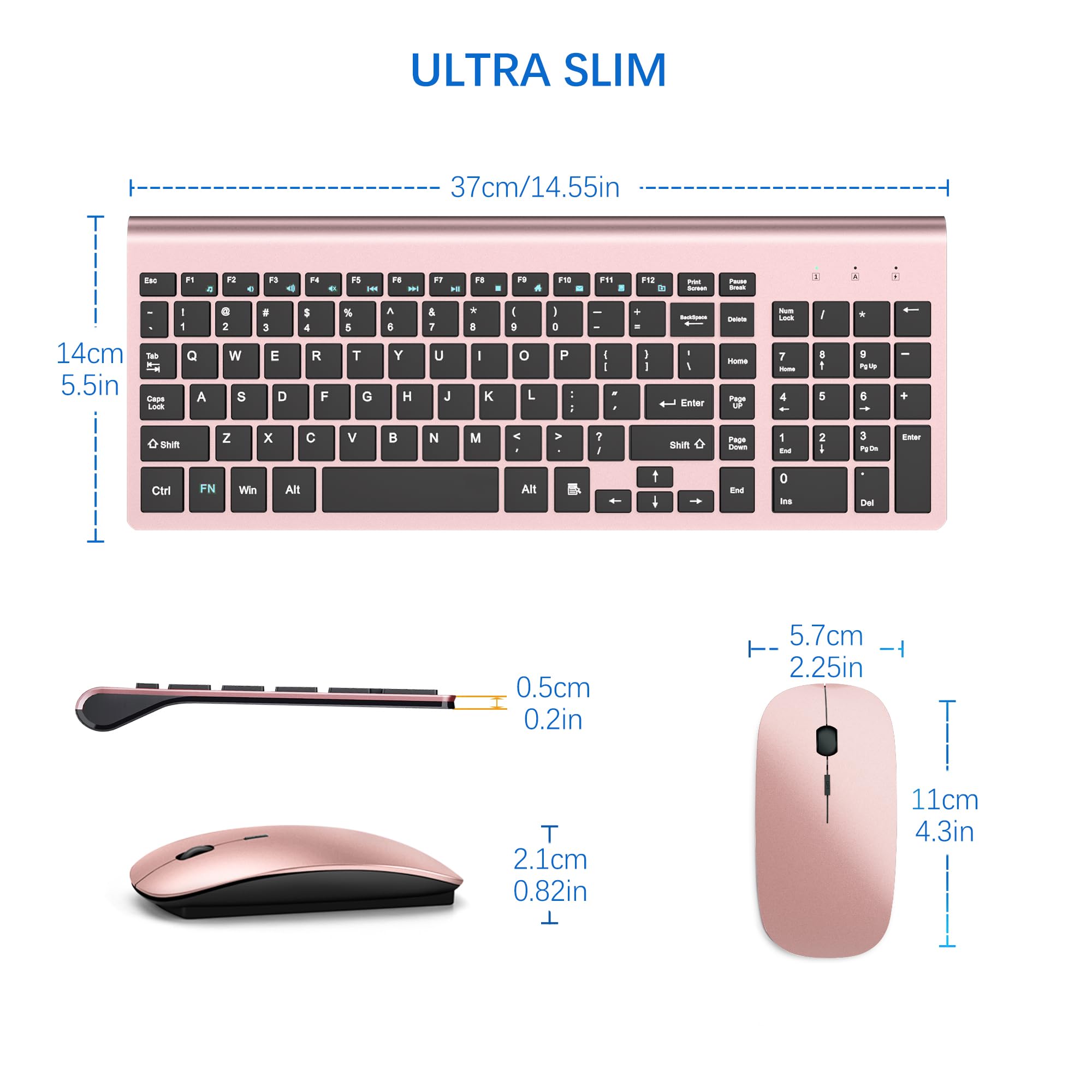 【Ultra-Slim and Portable Design】Wireless pc keyboard has 14.55x5.5x0.8in(37*14*2cm), 0.8in(2cm) ultra-thin ABS plastic body, which can save space and easy to carry. Kit keyboard and mouse wireless’s sleek design is super match with office desk. Perfect for business travel, office, home, library and many public occasions.