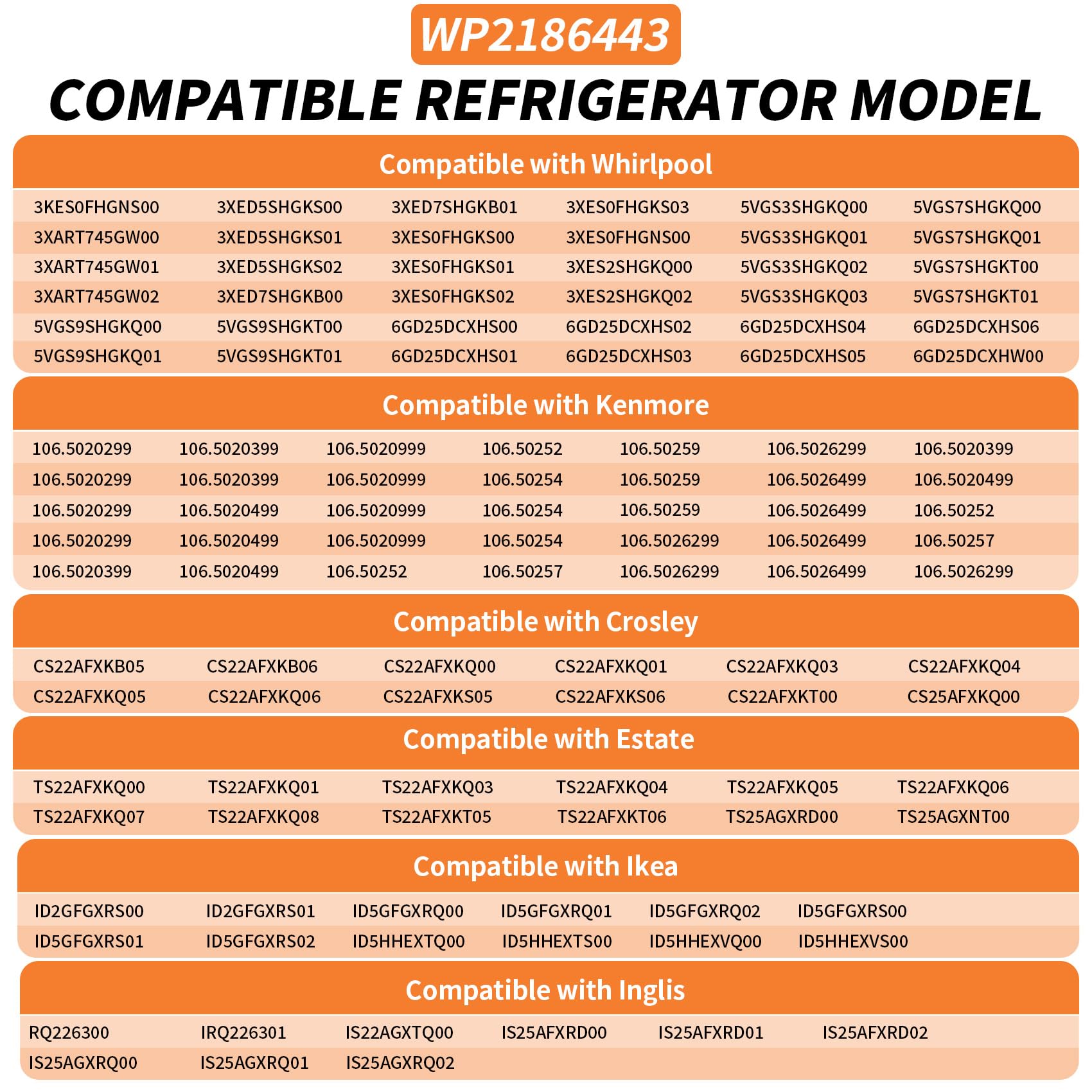 【Fits Model】2186443 Housing for Refrigerator compatible with Crosley Estate Ikea Inglis CS22AFXKB05 CS22AFXKQ00 CS22AFXKS05 CS22AFXKT00 CS22CFXTB01 CS22CFXTQ01 CS22CFXTS01 CS22CFXTT01 CS25AFXKQ00 CS25AFXKT00 TS22AFXKQ00 TS22AFXKT05 TS22AGXNQ00 TS22AGXNT00 TS25AFXHW00 TS25AFXKQ00 TS25AFXKS02 TS25AFXKT00 TS25AGXNQ00 TS25AGXNS00 TS25AGXNT00 TS25AGXRD00 TS25AGXRD02 TS25CGXTD02 ID2GFGXRS00 ID5GFGXRQ00 ID5GFGXRS00 ID5HHEXTQ00 ID5HHEXTS00 ID5HHEXVQ00 ID5HHEXVS00 ID5HHEXWQ00 ID5HHEXWS00 IRQ226300 IRQ226301 IS22AGXTQ00 IS25AFXRD00 IS25AGXRQ00