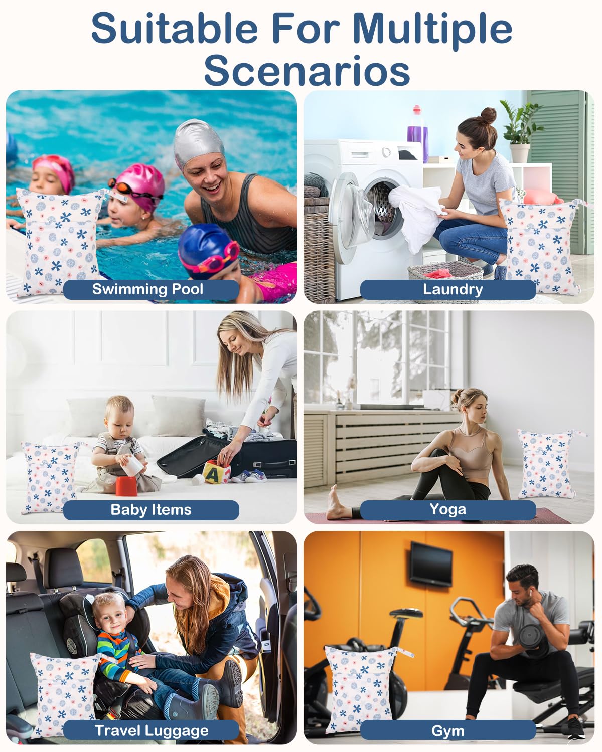 Multi-functional Bags-A truly wonderful bag that allows you to carry your wet and dry items in the same bag. Carry all your items in one bag while keeping your dry items dry and your wet or soiled items separate. Truly an all in one bag! They can be used as diaper wet dry bags,travel bags,storage bags,cosmetic bags,handbags,wash bag,organizer bags.