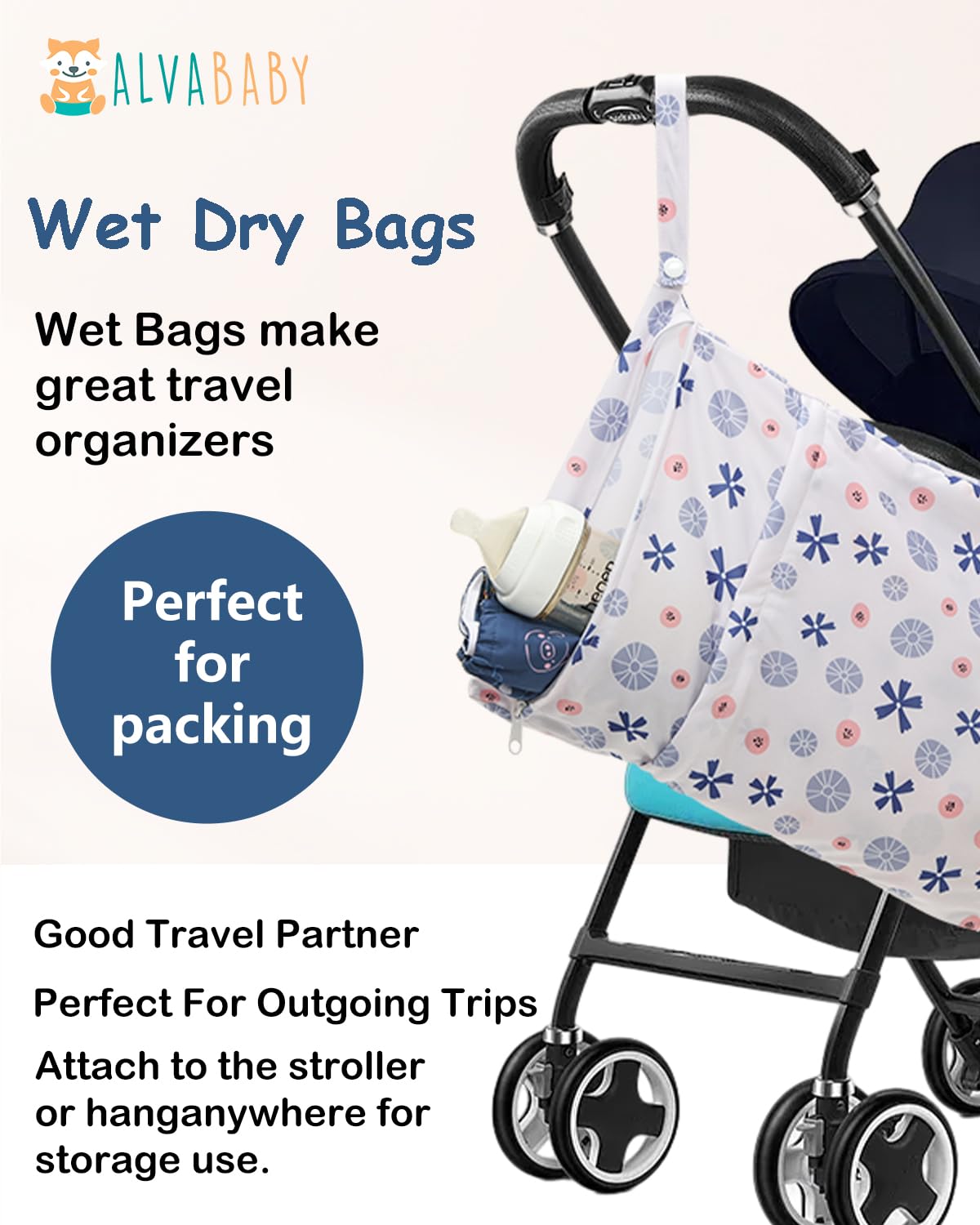 Fashion, Reusable&Waterproof , High quality -A trim and attractive design. ALVABABY wet/dry bag are made from waterproof 100% polyester, put dirty cloth diapers in a wet bag. Comes with handle for easy carrying or attaching to your diaper bag or stroller.