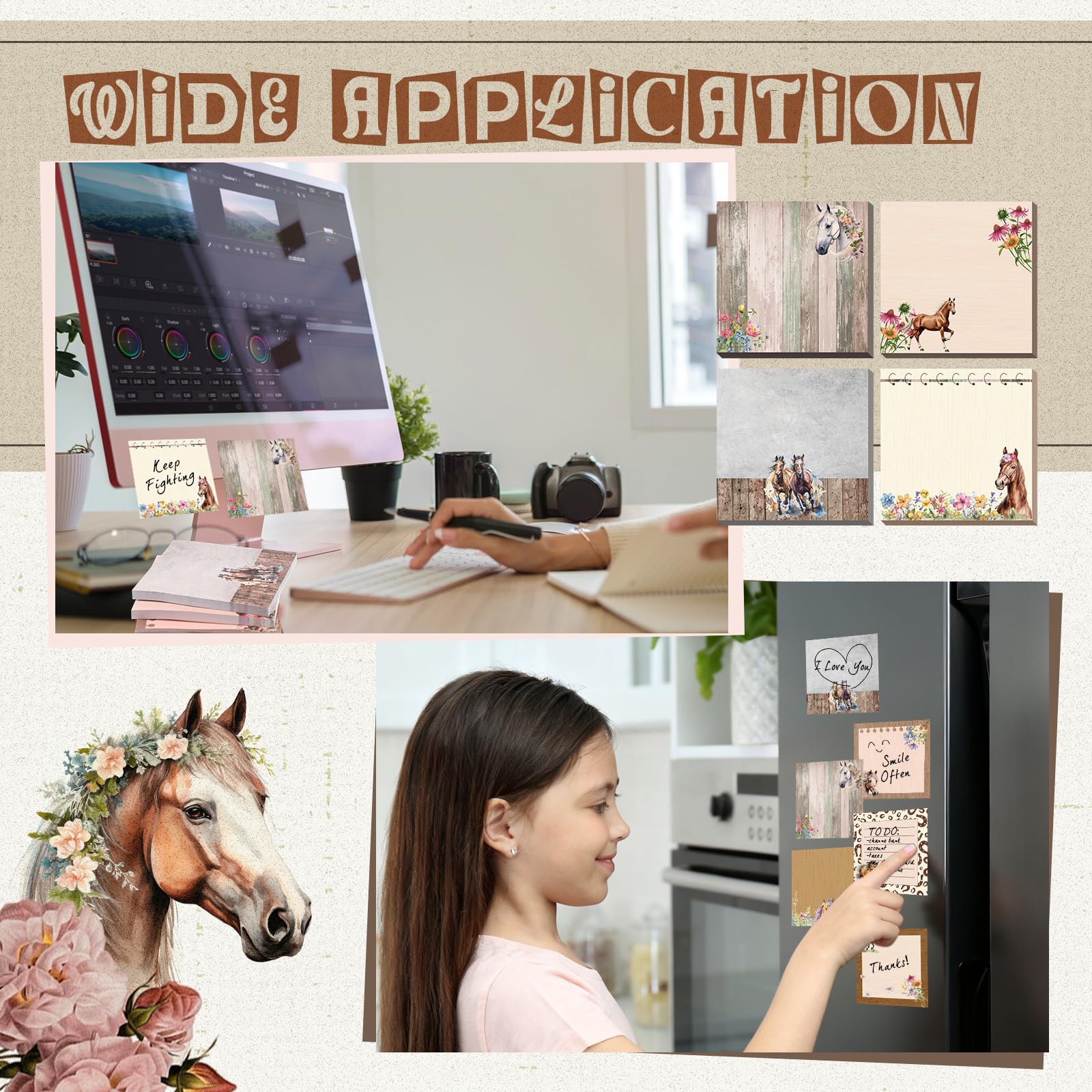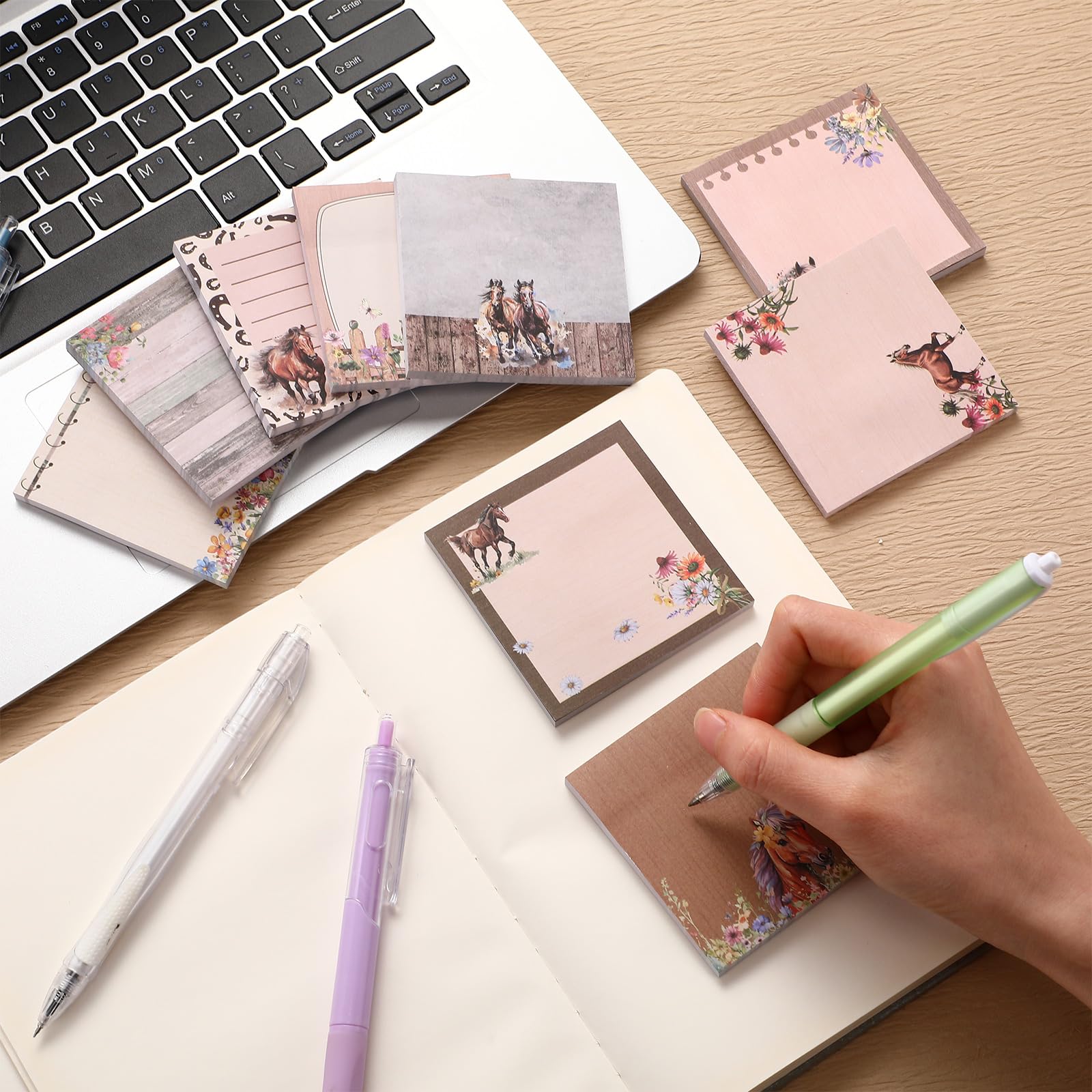 Package Contains: the set of floral horse sticky note pads includes 9 pads, with 50 sheets each, providing a total of 450 useful and attractive notes; Each note measures about 3 x 3 inches/ 7.6 x 7.6 cm, poised to assist in organizing and efficiency tasks