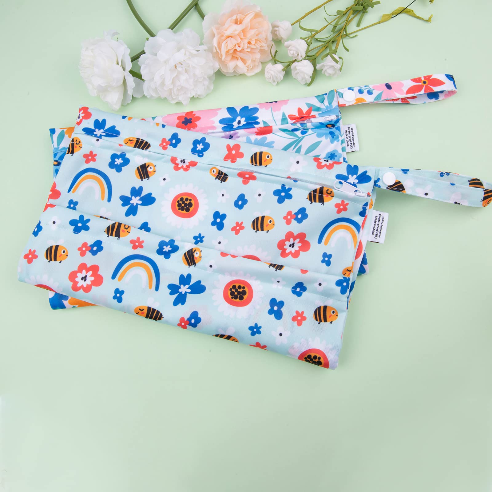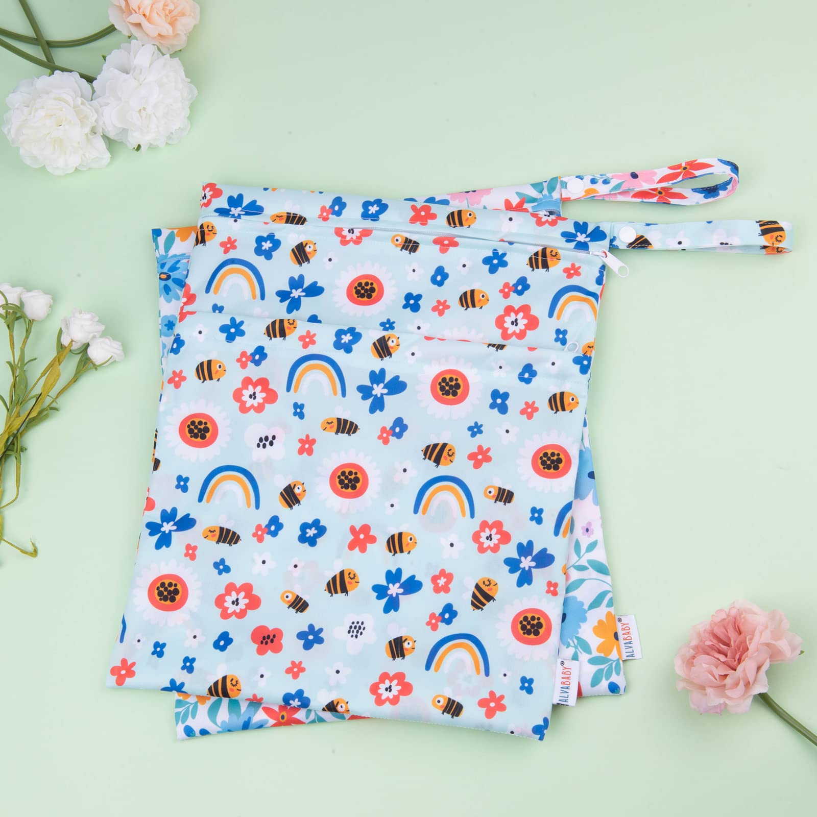 Fashion , Reusable&Waterproof , High quality -A trim and attractive design. ALVABABY wet/dry bag are made from waterproof 100% polyester, put dirty cloth diapers in a wet bag. Comes with handle for easy carrying or attaching to your diaper bag or stroller.