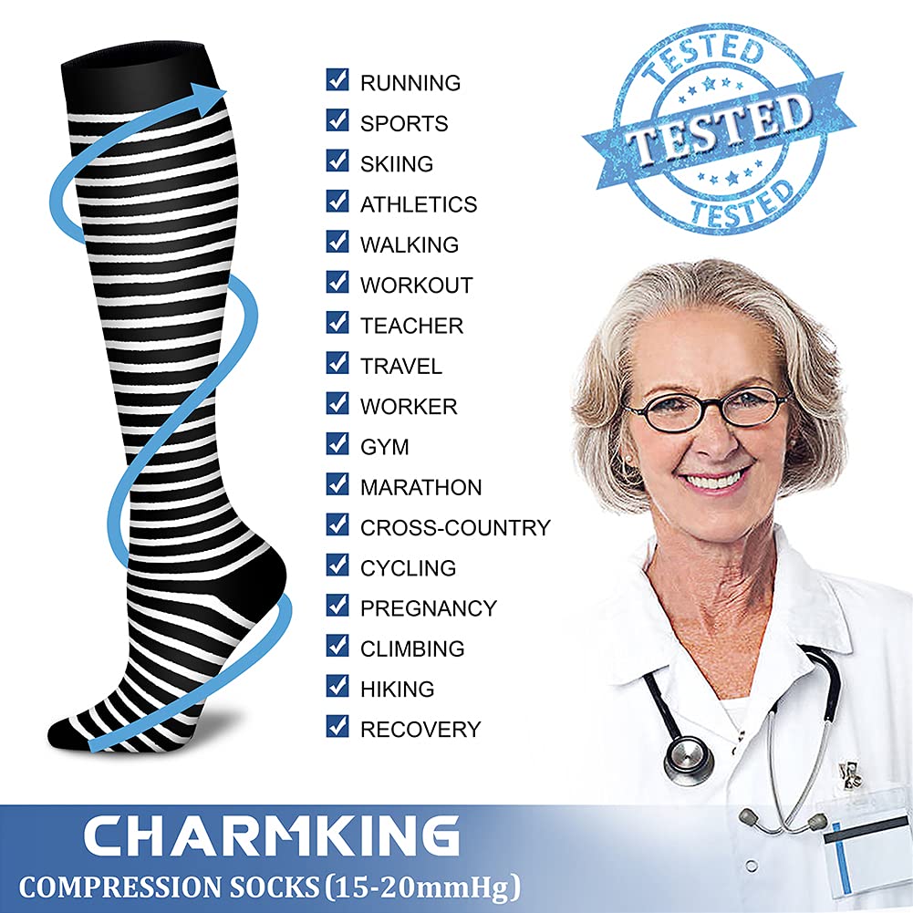 SUPPORT - Our compression socks (15-20 mmHg) come highly recommended by trainers. They are suitable for athletes, teachers, flight crew, receptionists, office workers, nurturing mothers, and the elderly. These socks are universally suitable for all types of work.
