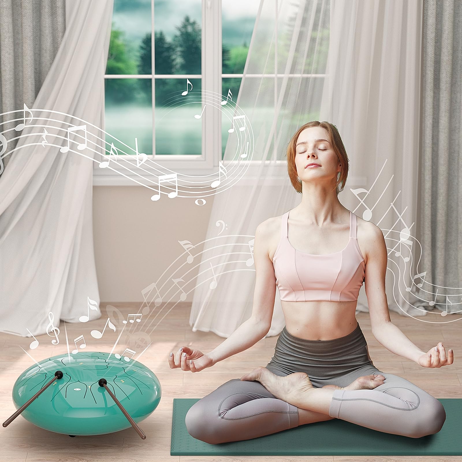 High-Quality Craftsmanship: This 12-inch handpan is made from premium carbon steel and coated with protective paint for exceptional corrosion and heat resistance. Each steel tongue drum is meticulously hand-modulated and accurately cut to ensure precise tones and harmonies, delivering a truly high-quality musical instrument.