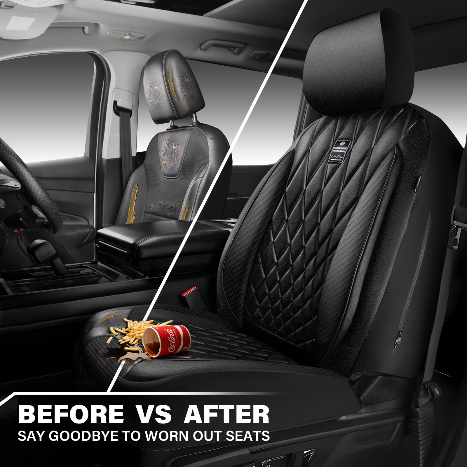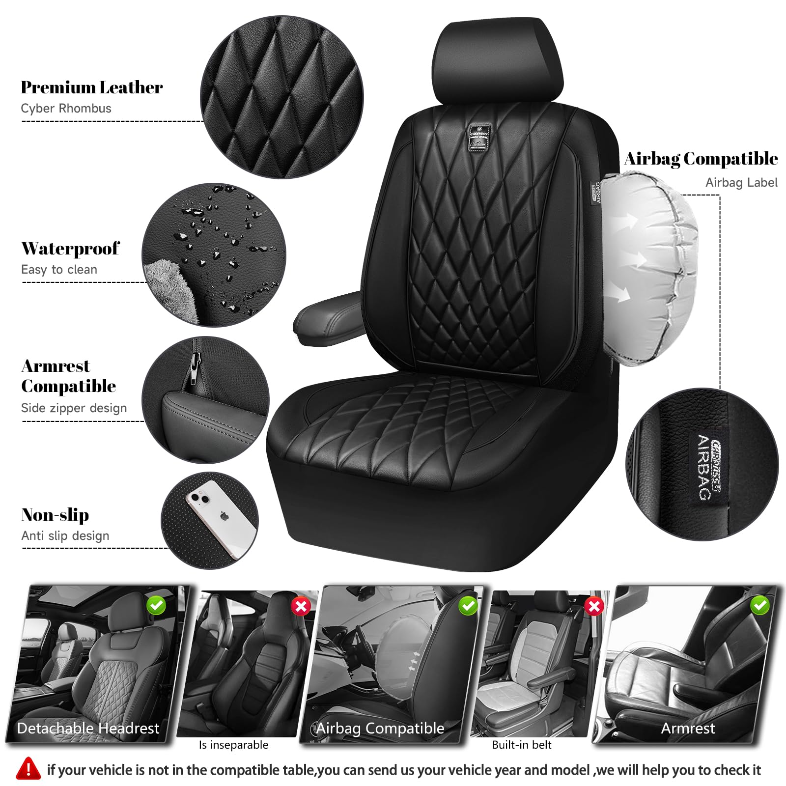 【ADVANCED LEATHER SEAT COVERS】The Seat covers are made of high quality leather, providing full protection for your car seats. Waterproof, breathable and easy to clean. Protect your car seat covers from dust, scratches and other possible damages. Outstanding diamond stitching design adds luxury and fashion to your car's interior.