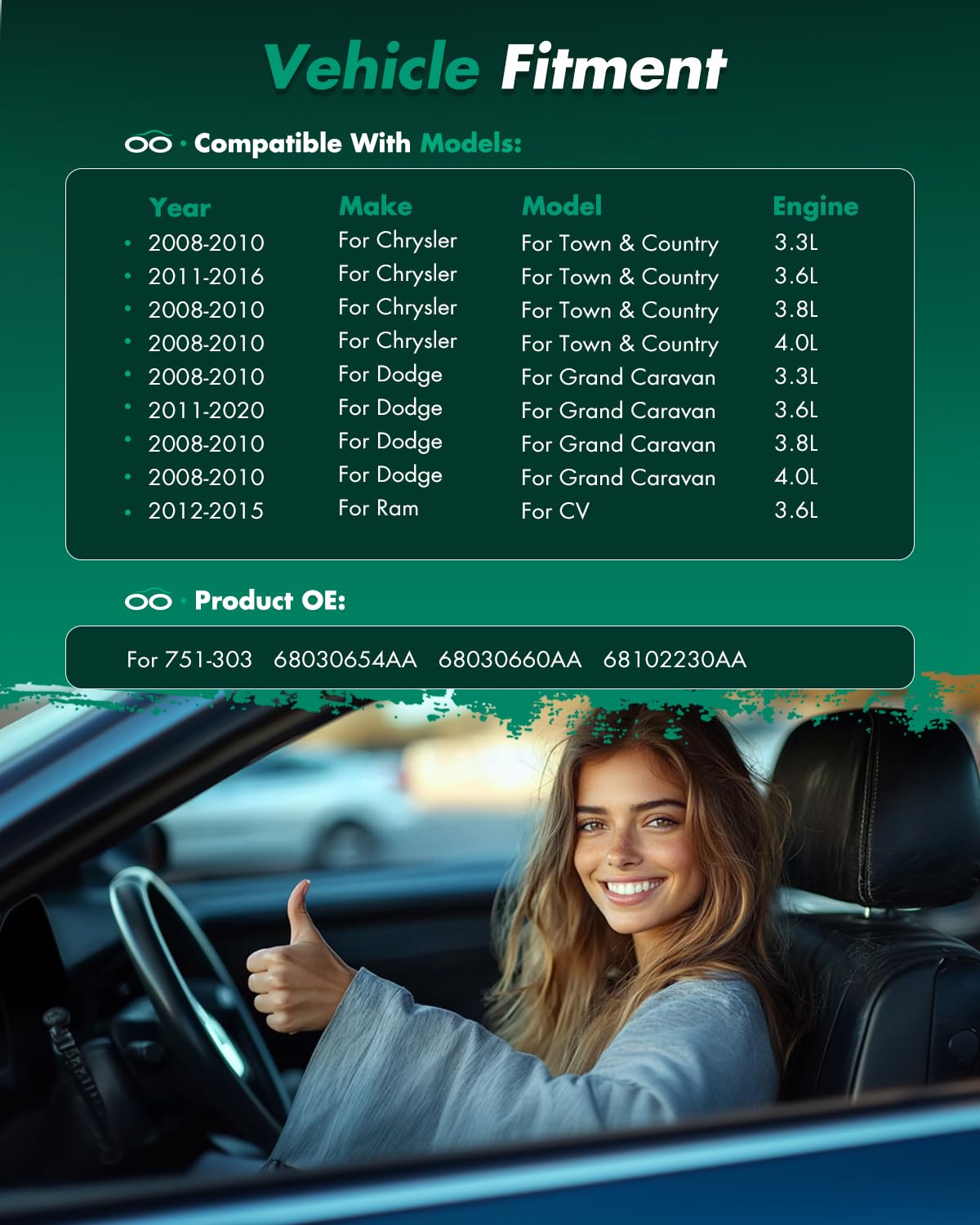 APPLICABLE VEHICLES - OEM:751-303,68030654AA,68030660AA,68102230AAThe power window regulator fit for 2008-2016 for Chrysler Town & Country,2008-2020 for Dodge Grand Caravan,2012-2015 for Ram C/V