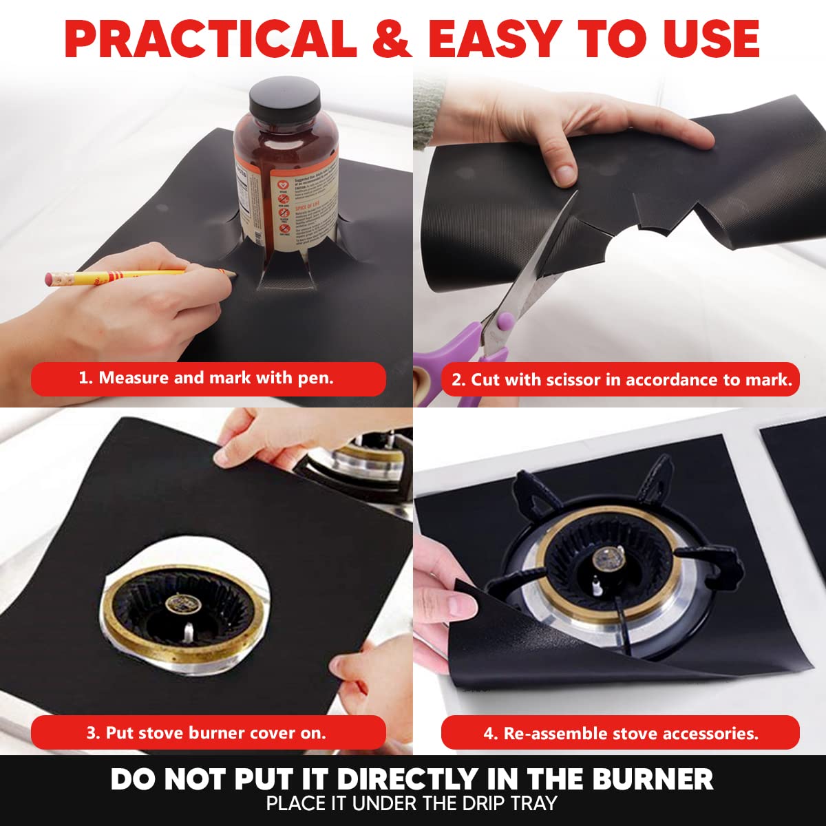 REUSABLE & DISHWASHER SAFE: Removable and can be used over and over. Wipe clean or rinse off effortlessly every single time. When used as oven liner, place them on the lowest rack or tray in gas or electric ovens with a hidden element. For electric ovens with an exposed heating element, slide them correctly under the heating element at the bottom of the oven floor. Avoid direct contact with the heating element or open flame.