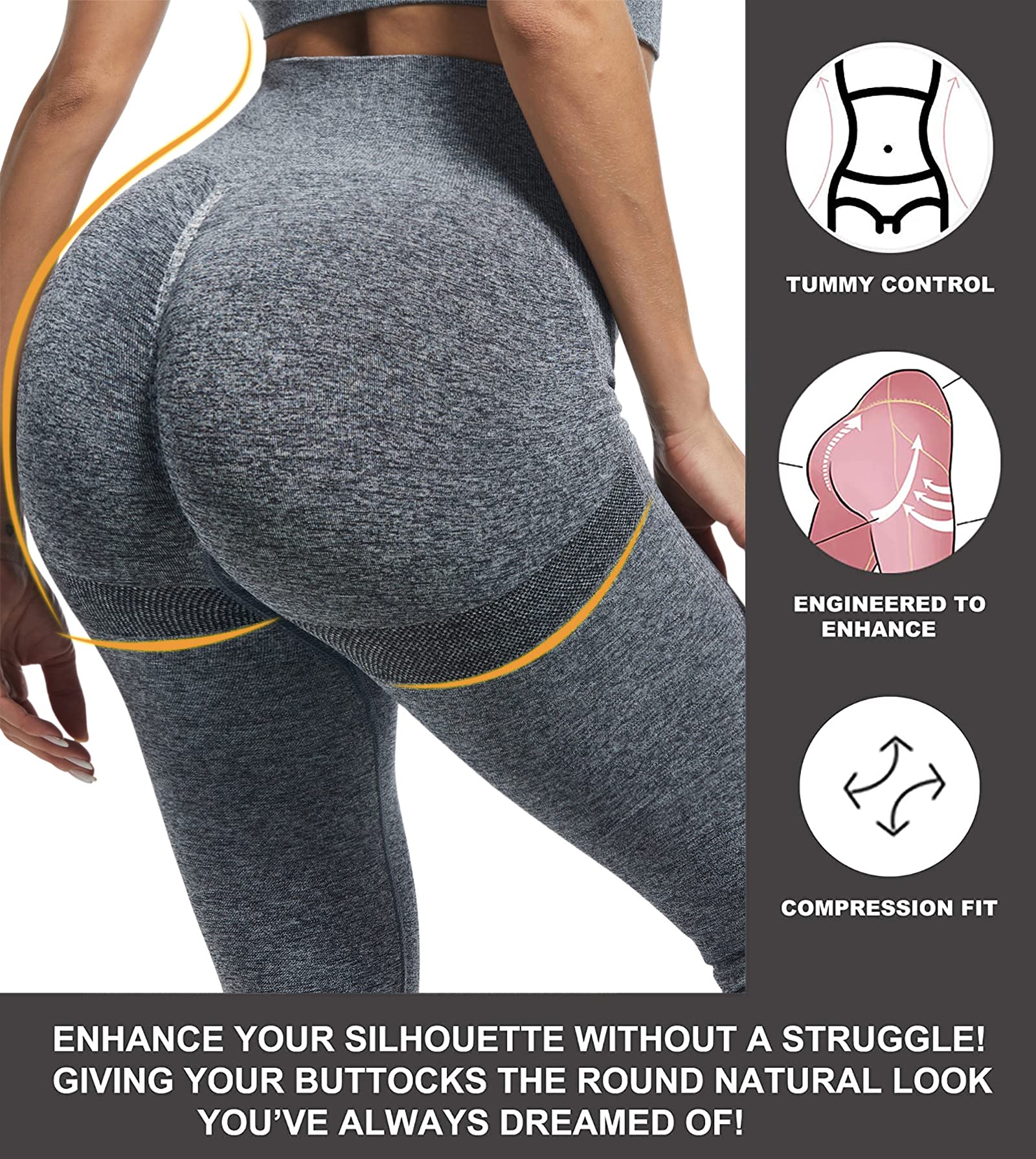 ✔ SEAMLESS HIGH WAISTED LEGGINGS - are what you’ve been waiting for, Their flattering fit and contouring ruched detail to the bum meet with a supportive and supple seamless fabric to advance your performance, Features compression in targeted areas that gently smooths and sculpts the backside and legs for a feminine, shapely look