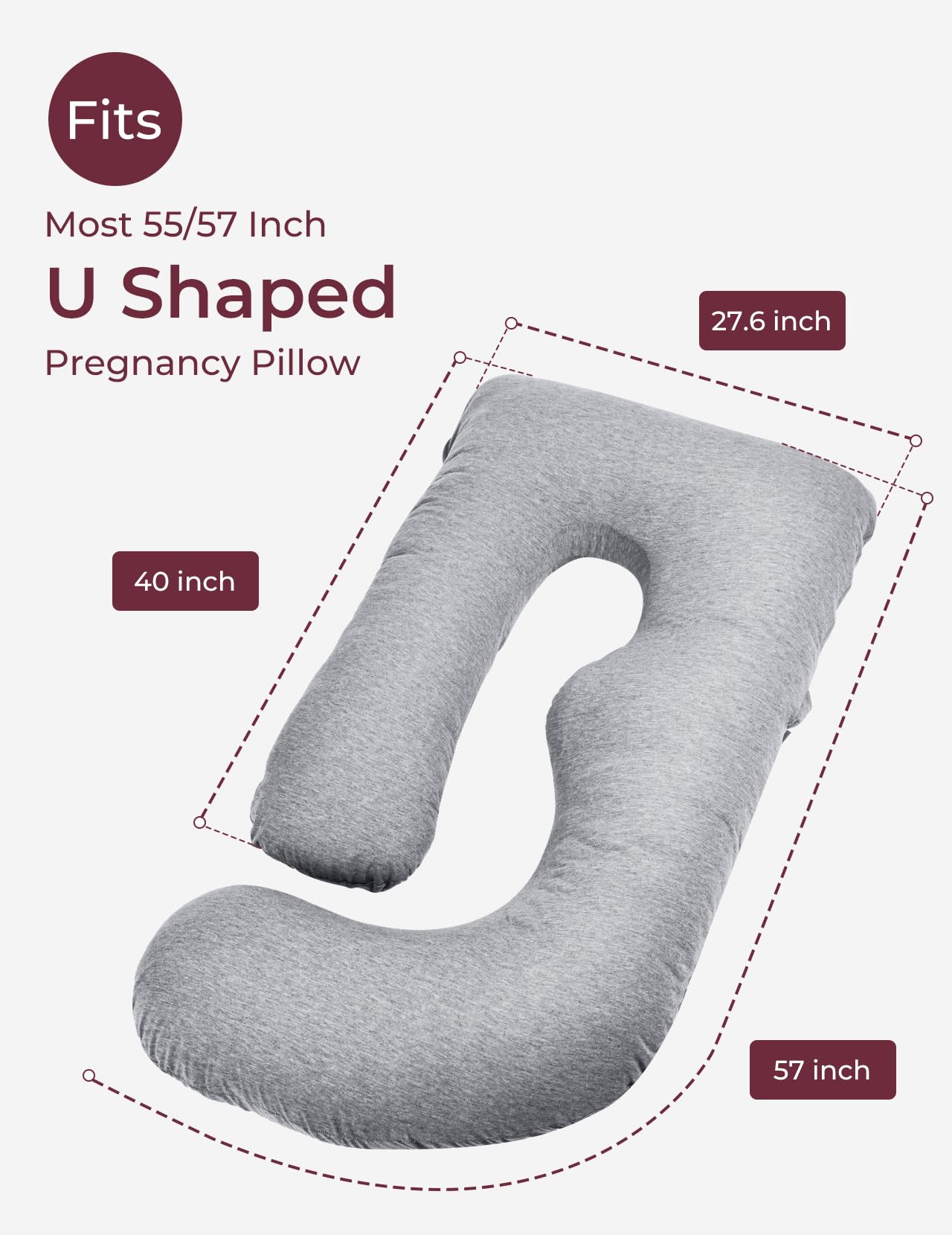 Unique U-shaped Design: Momcozy U-shaped pillowcase measures 57 x 28 inches and provides some extra stretch to provide a neat, snug fit over most 55/57 inch U-shaped maternity pillows. Features an extra layer of softness, this pillow cover upgrades your pregnancy pillow with extreme comfort and convenience.