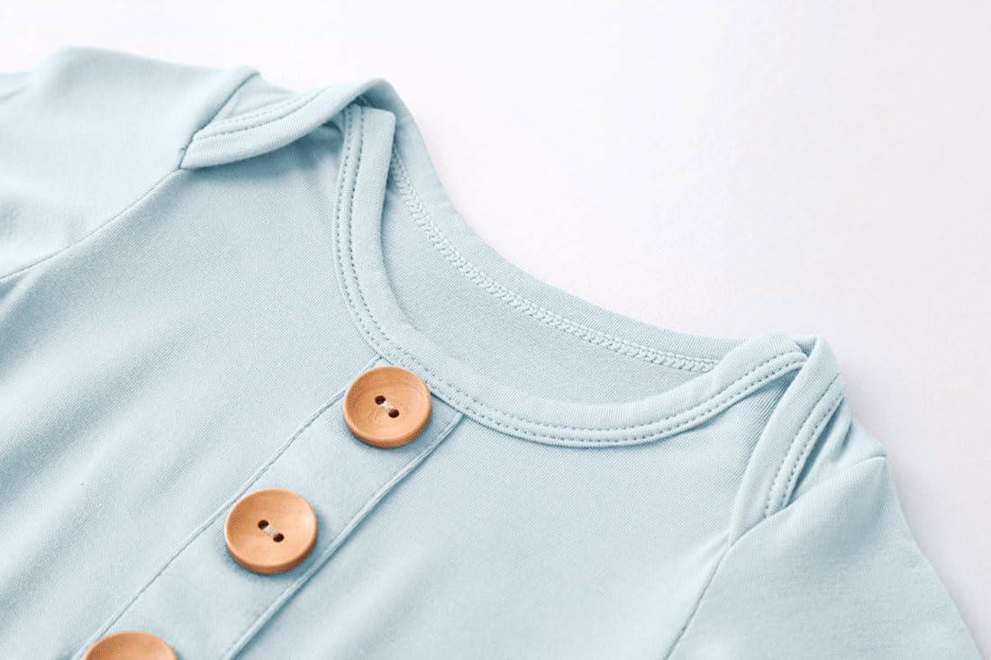 Fold-over Mittens---With the Convertible Mittens, This Breathable Baby Knotted Gown and Button Set Can Help Prevent Accidental Scratches.
