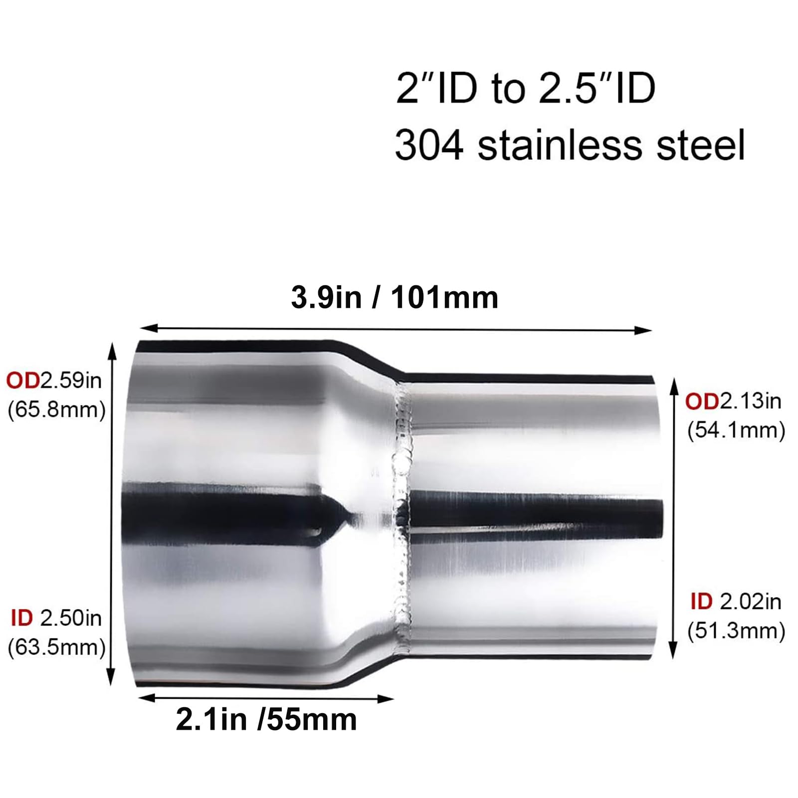 【Specifications】Length May Vary: Approx. 4", Metal Thickness May Vary: Approx. 0.05". If opposing OD/ID’s are used, fitment is not guaranteed.Please measure the detailed size before purchase