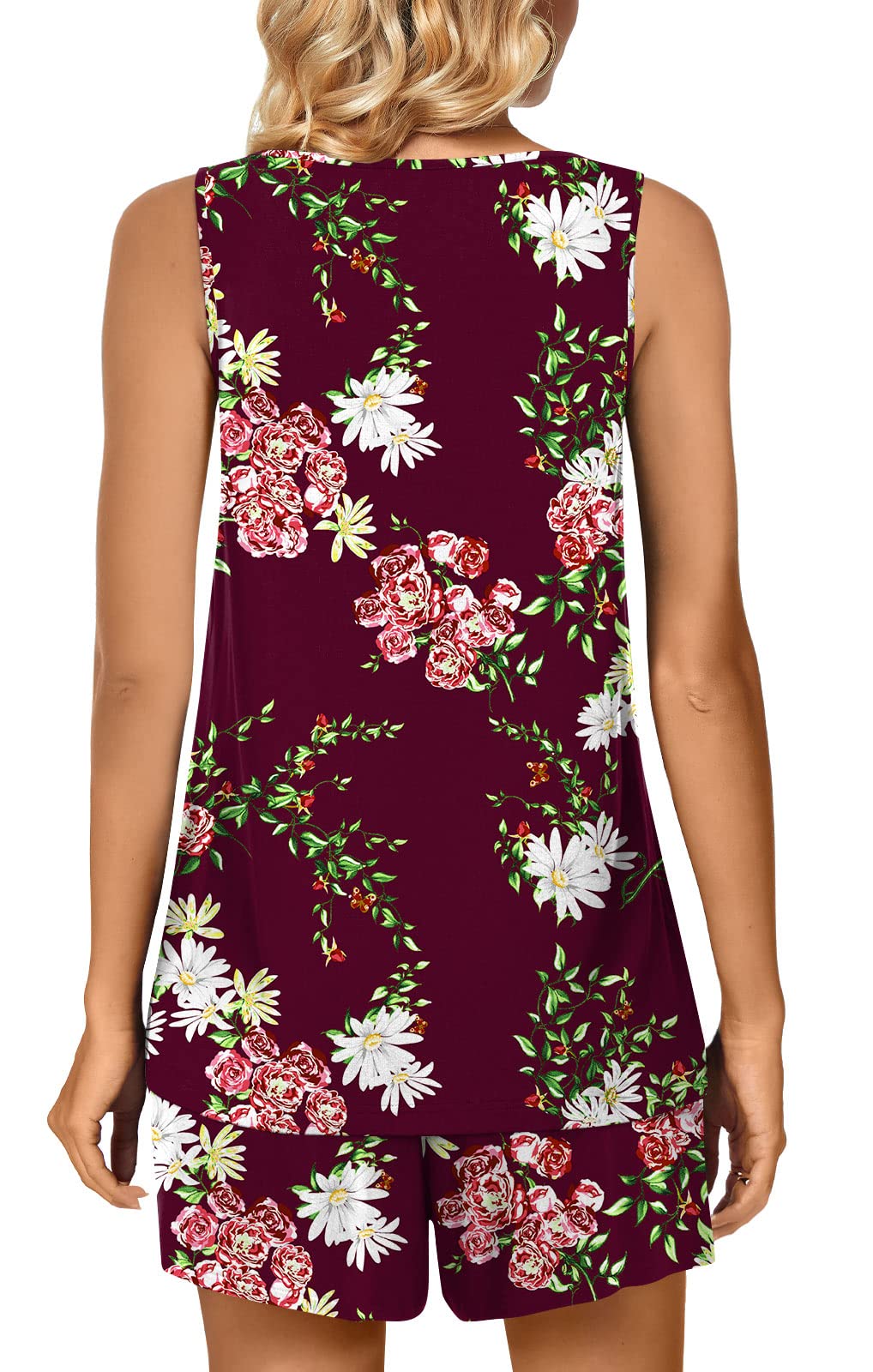 Fashion Simple Design: The ladies pajamas sets sleeveless tank tops with pleated, scoop neck design. Womens pajamas set tops perfect length covers what you need it to like your tummy. The bottoms are very roomy and fit nice with an elastic waistband adapting to different body shapes for all-night comfort. Pajamas bottoms have nice deep hidden pockets to hold cell phone or small things