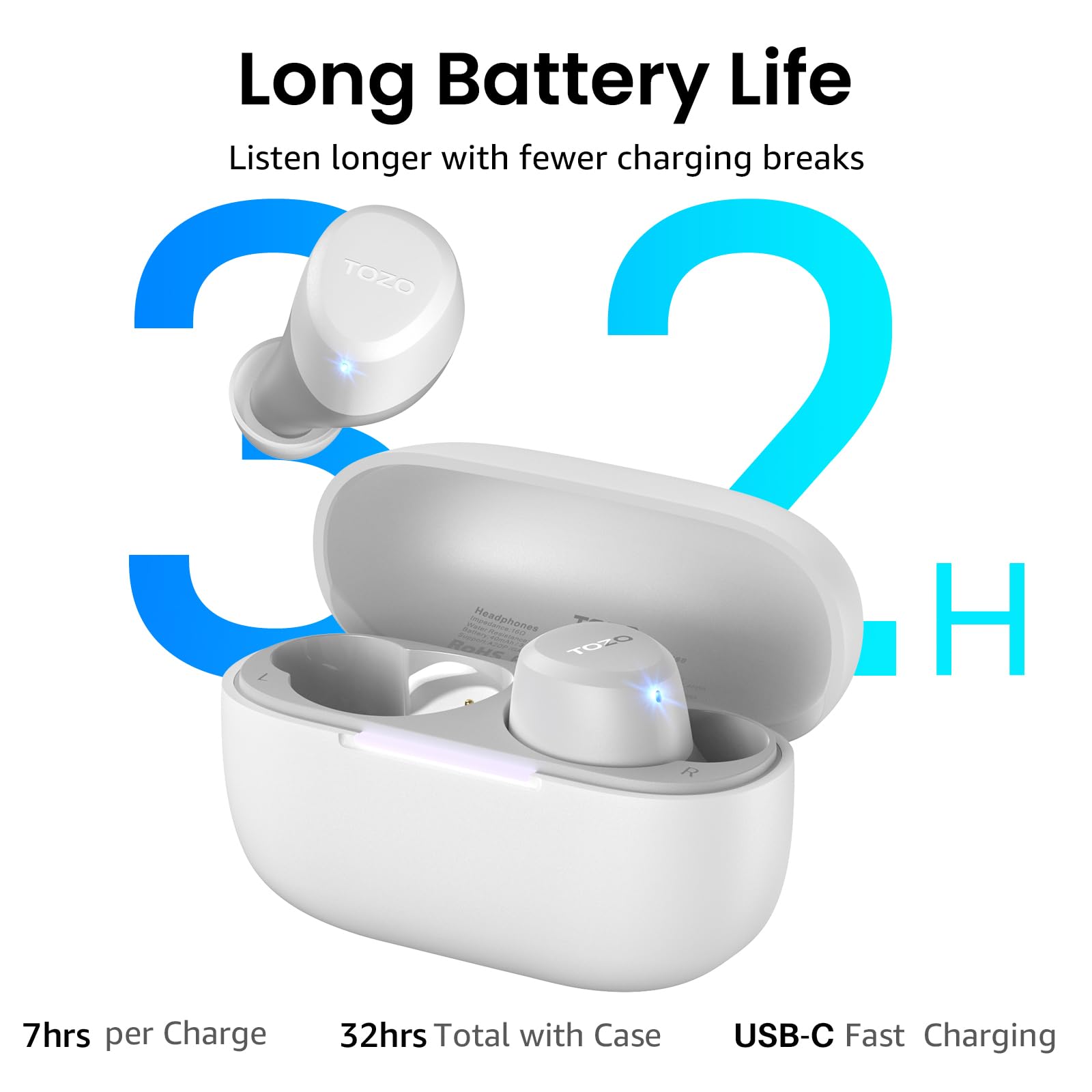 [Long Battery Life for Daily Use] Get up to 7 hours of playtime on a single charge, with up to 32 hours total using the charging case—ideal for workdays, commuting, and extended listening sessions.