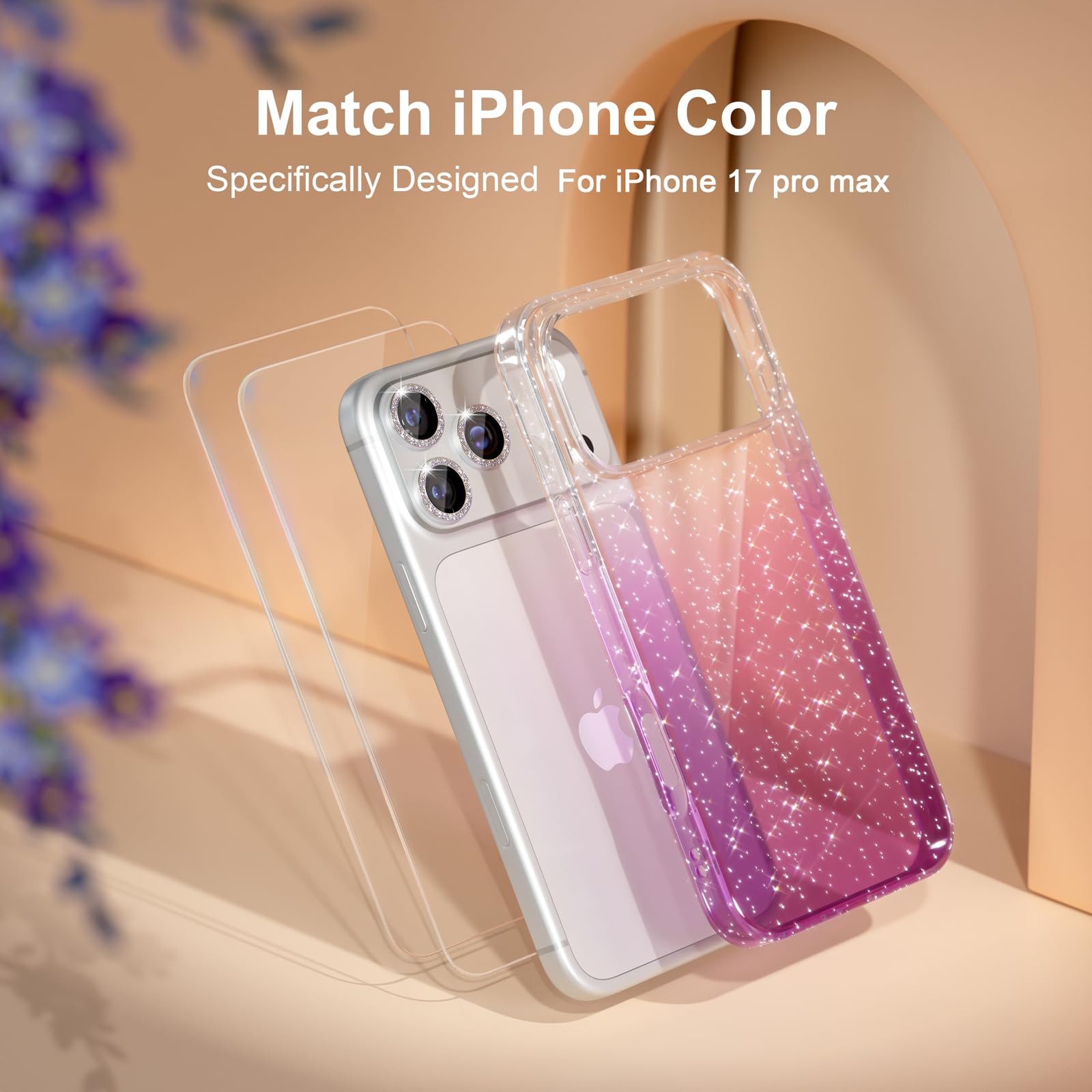 Package Includes: 1 x Glitter Case replacement for iphone 17 pro max, 2 x tempered glass screen protectors, and 3 x Camera Lens Protectors. Compatible for iphone 17 pro max 6.9-inch 2025. Please check your phone model and make sure you order the right size