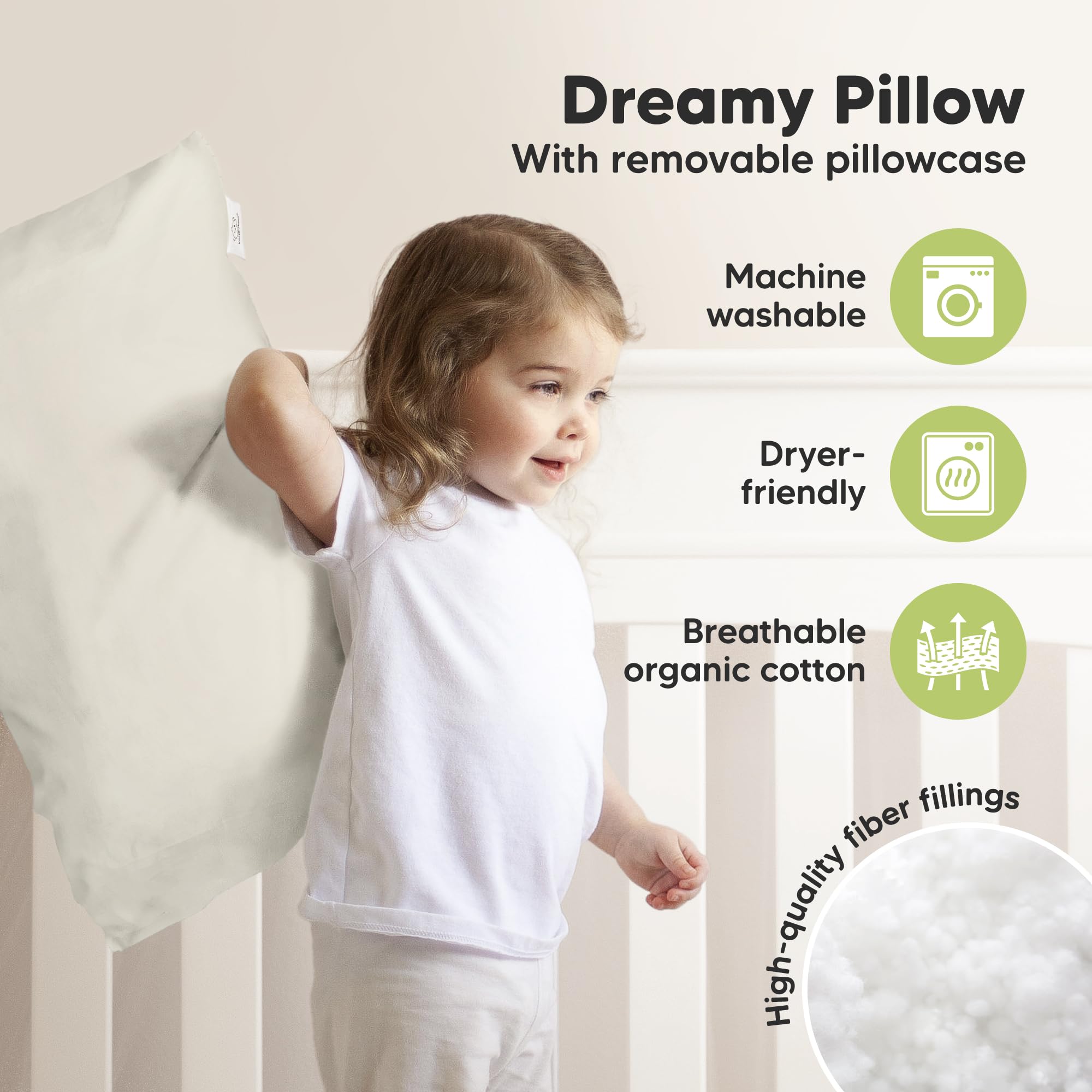 Natural Cotton - Our toddler pillowcase and cover are made of OEKO-TEX 100 Standard and GOTS Certified CU 1042833 Organic Cotton. This soft & breathable toddler pillow for kids is the perfect kid pillows for sleeping and travel pillow for 2 year old.