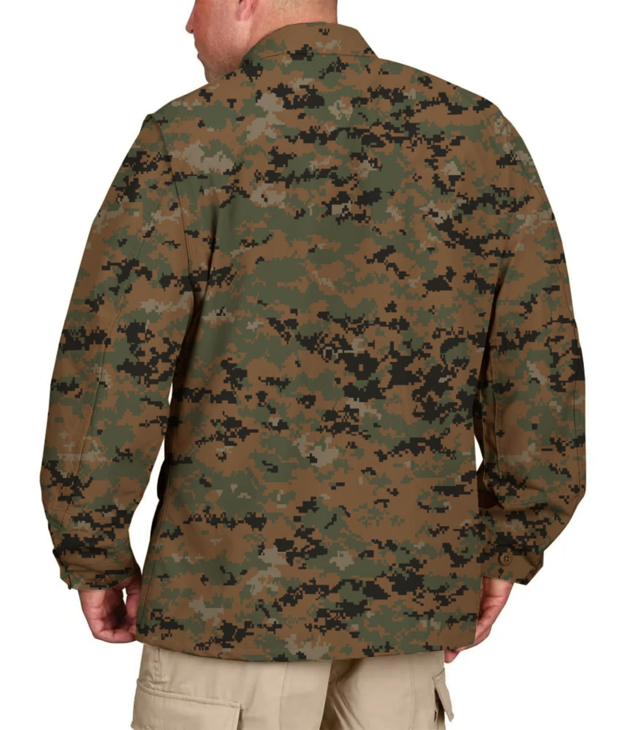 Description Inspired by our military designs, Proper uniform BDU coat features reinforced construction and an authentic fit. Four Front cargo pockets, a covered button front and fused pocket flaps and collar provide a long-lasting professional look. Double-reinforced elbows and felled seams ensure maximum durability on high stress points.