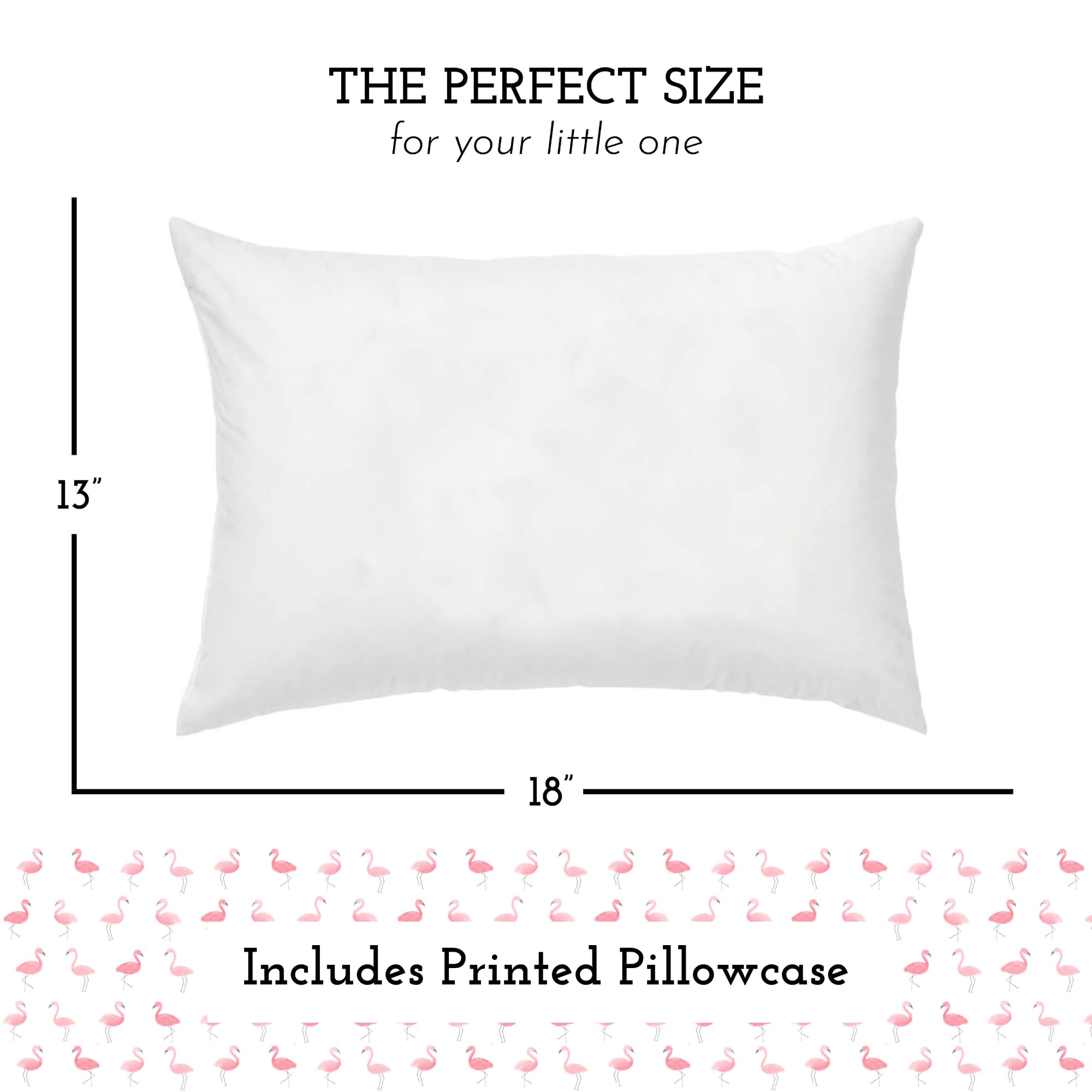 13" x 18" Toddler Pillow and Pillowcase - This snugly, take-it-everywhere he or she goes small pillow is THE perfect size and softness for your toddler! Our children's pillows are just right for their toddler bed too! Available in a variety of colorful designs that appeal to kids, the Little Sleepy Head toddler bedding set ensures sweet dreams wherever they lay their head.