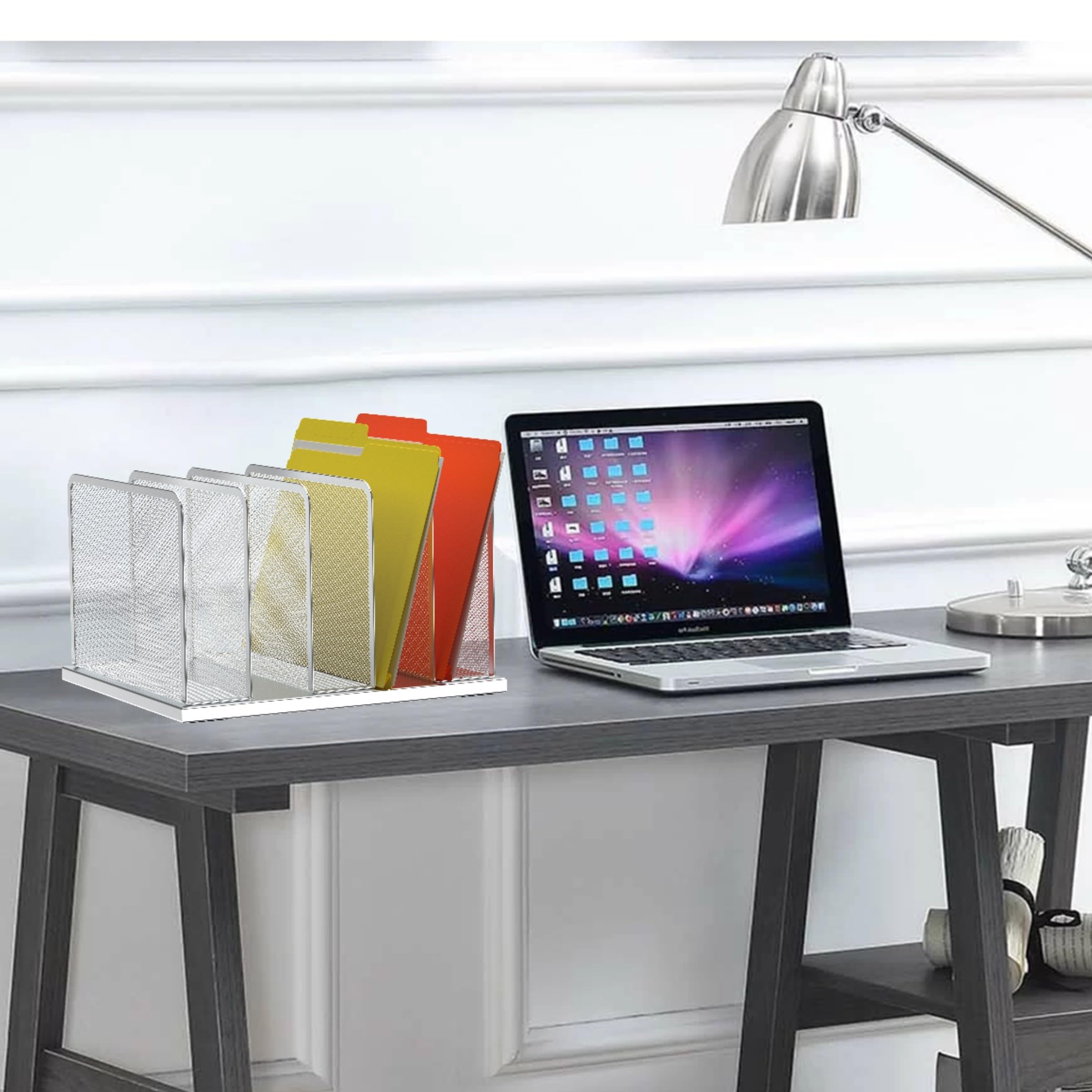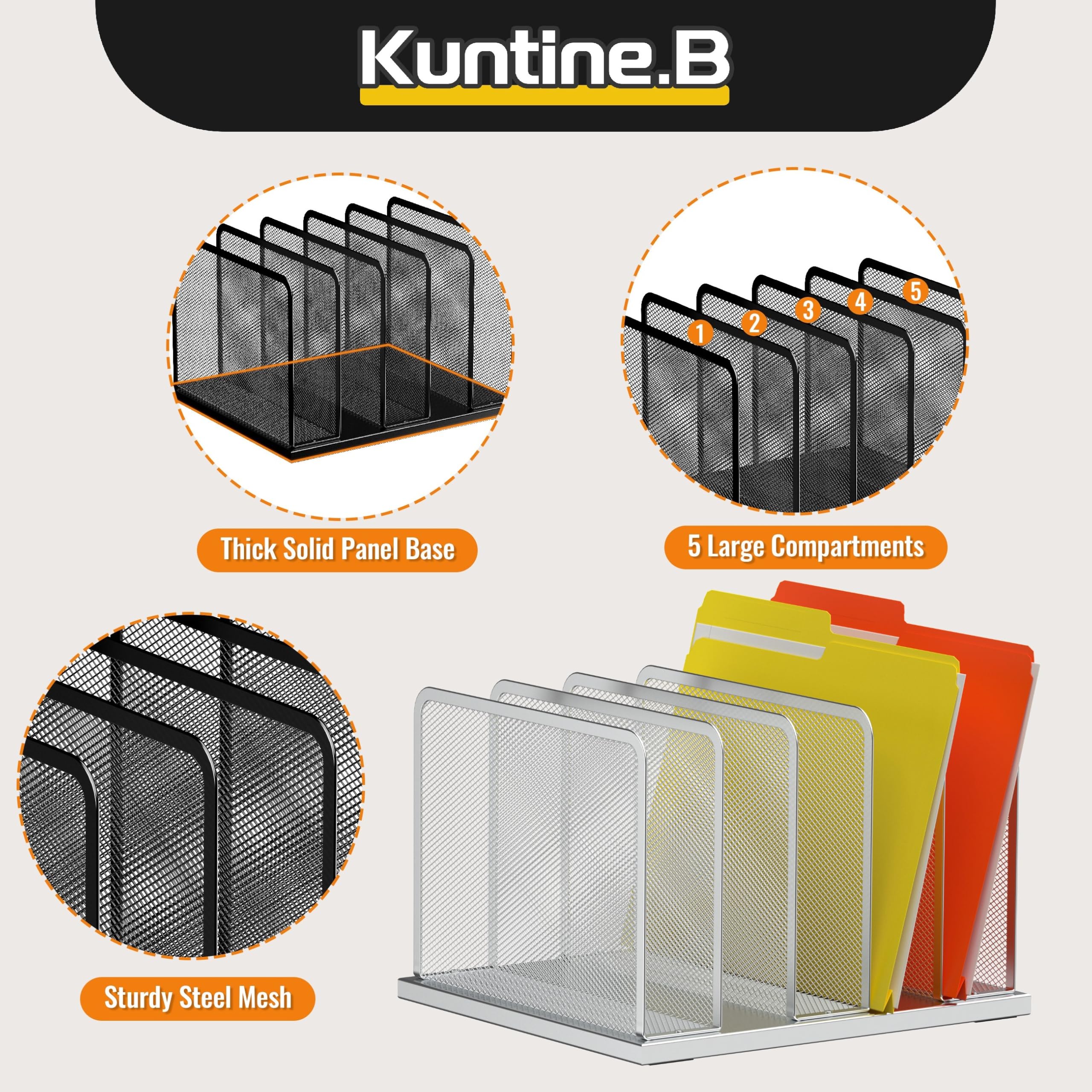 Kuntine.B Desk File Organizer Upright Mesh Desktop Organizer File Sorter Office Organization File Holder for Home, Office & Classroom (Silver, 1 Pack 5-Section)
