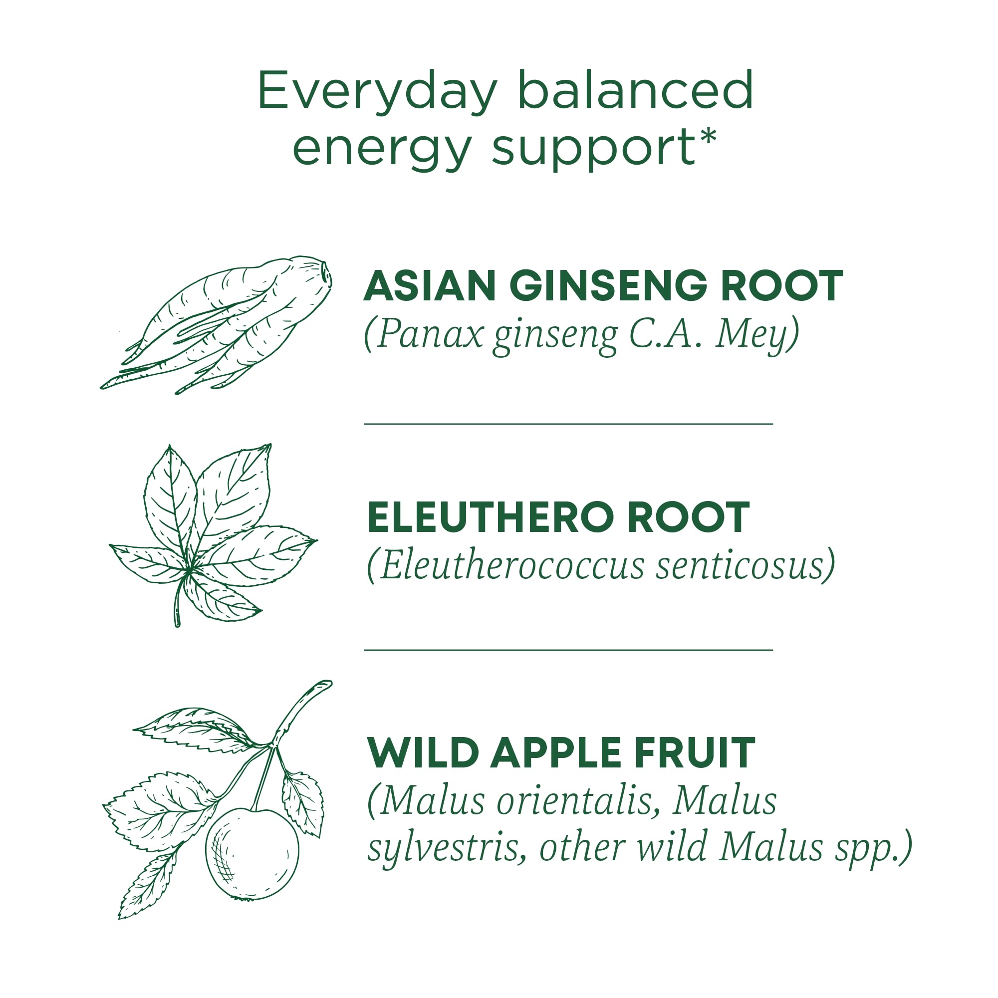 Inspired by tradition: Ginseng, an adaptogen, helps sharpen the mind and together with eleuthero helps you enjoy steady energy levels and less occasional stress*