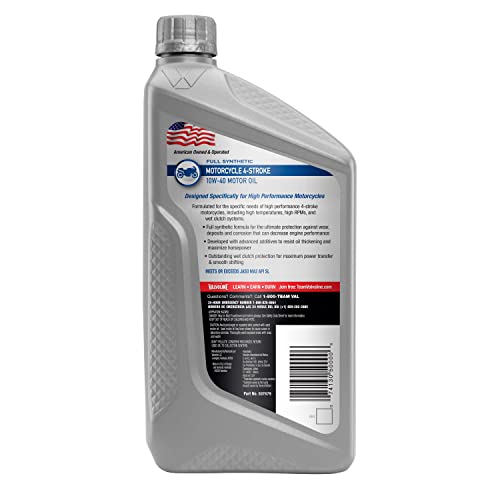Valvoline 4-Stroke Motorcycle SAE 10W-40 Full Synthetic Motor Oil provides the ultimate wet clutch, transmission and engine protection for high performance 4-stroke motorcycles, cruisers and off-road bikes. Our anti-friction formulation is specifically designed for the extreme temperatures and high RPMs of 4-stroke motorcycles, meeting or exceeding all specifications set by the Japanese Automotive Standards Organization (JASO) and the American Petroleum Institute (API). It provides outstanding wet clutch protection and helps prevent slippage to ensure smooth shifting and optimal power transfer. While advanced additives safeguard against deposits, corrosion and oil thickening that can decrease performance and longevity. No wonder motorcycle owners and race teams around the world rely on Valvoline, the trusted motor oil brand for over 150 years.