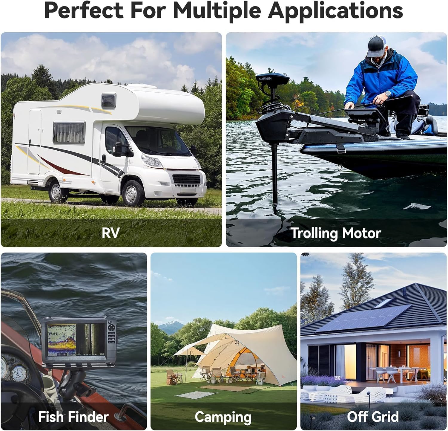 【Choose the Right 12V 100Ah for Your Needs】①12V 100Ah Basic (BCI Group 31): Best for off-grid solar power systems, marine, and RV motorhomes. ②12V 100Ah Low-Temp: Best for trolling motors, off-grid solar power systems, marine, and RV motorhomes., features group 31 size. Upgrade BMS with Low-temperature protection. ③12V 100Ah-BCI Group 24: Best for off-grid solar power systems, marine, RV motorhomes, and trolling motors. Versatile, fits BCI Group 24, 27, 31. ④12V 100Ah Bluetooth (BCI Group 24): Best for every scenarios in group 24 size, also with low-temp protection. ⑤ 12V 100Ah Bluetooth (BCI Group 31): revolutionary upgrade from 12V100Ah low-temp. One-for-All battery in BCI group 31 size.