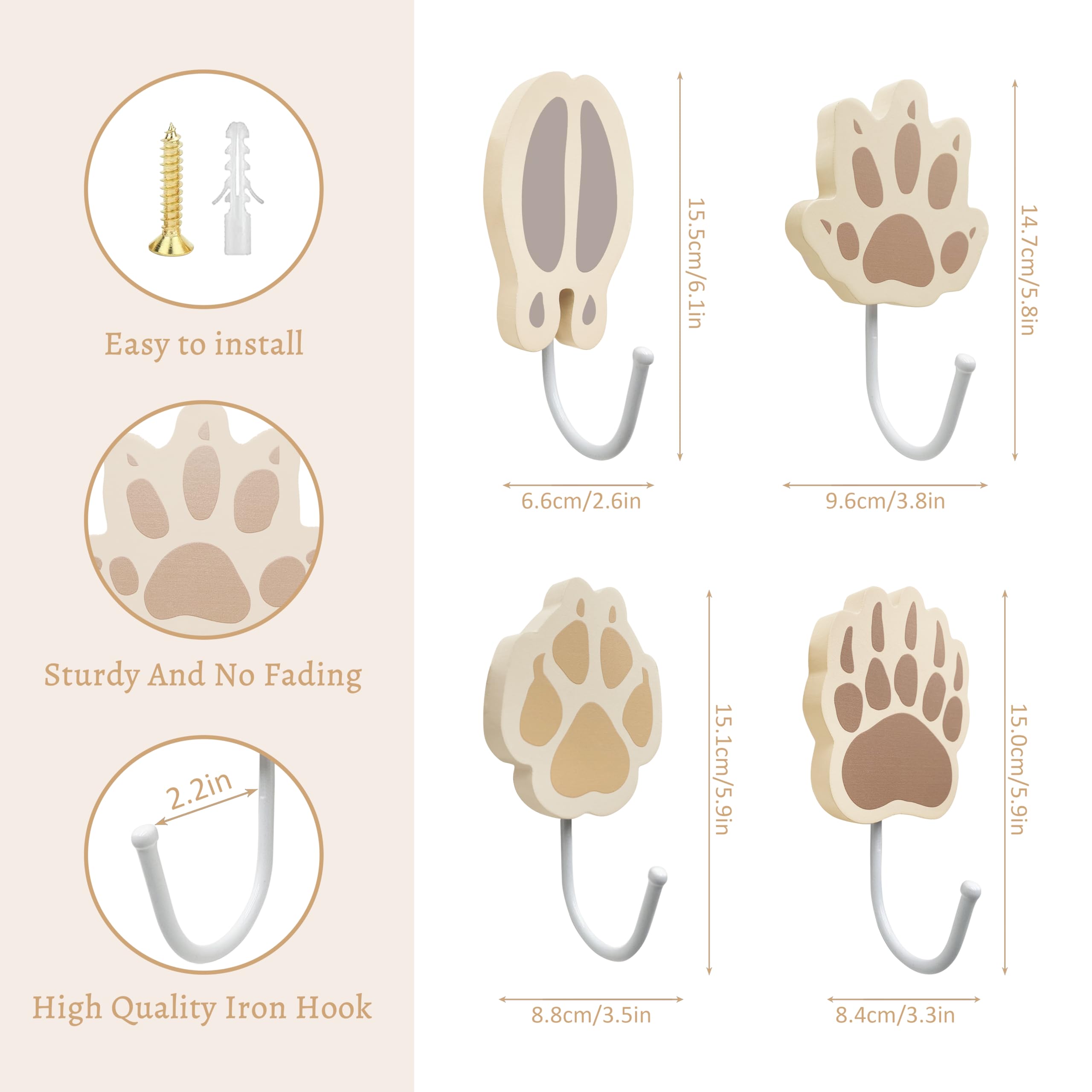 Cute Design: The hooks feature four different animal tracks (bear, hedgehog, deer, fox) patterns , designed to be both functional and cute, making them a beloved addition to any woodland home decor.
