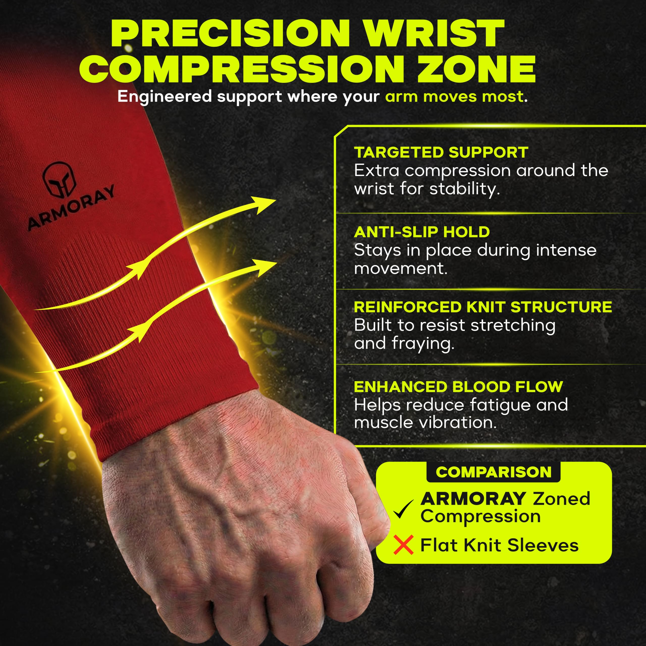 SUPERIOR Compression Fit: These arm compression sleeves provide a supportive, snug feel without restricting movement. Stretch fabric adapts to different arm sizes while maintaining shape during workouts or long hours outdoors.