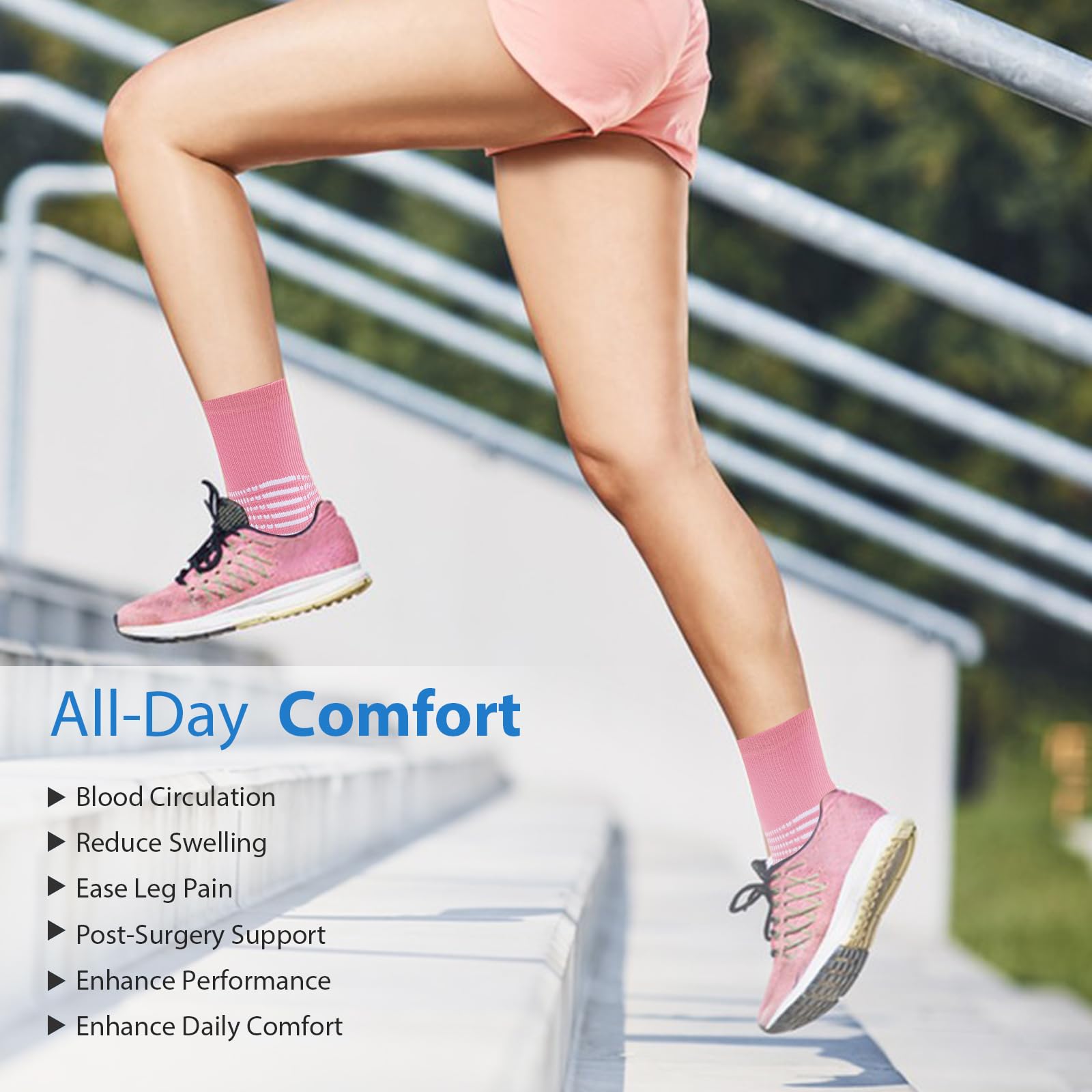 Breathable & Fast-Drying Comfort:Our compression socks are designed with premium quick-drying fabric and breathable mesh panels across the instep to enhance airflow and speed up moisture evaporation. Perfect for running, hiking, workouts or everyday wear,keeping your feet comfortably dry through any activity