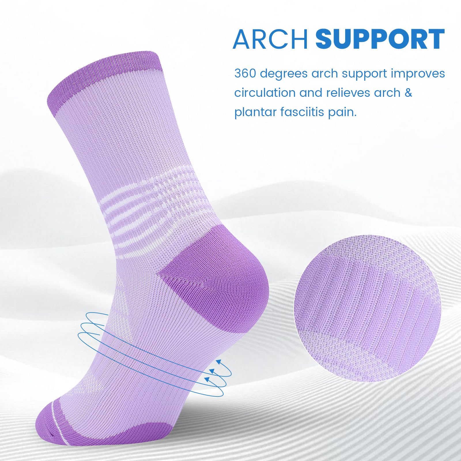 360° Arch Support:Our arch support socks feature full-circle compression to relieve plantar fasciitis pain and foot fatigue. The ergonomic design targets pressure points, providing all-day comfort for professionals on their feet and anyone battling plantar fasciitis relief—no more post-work foot soreness!