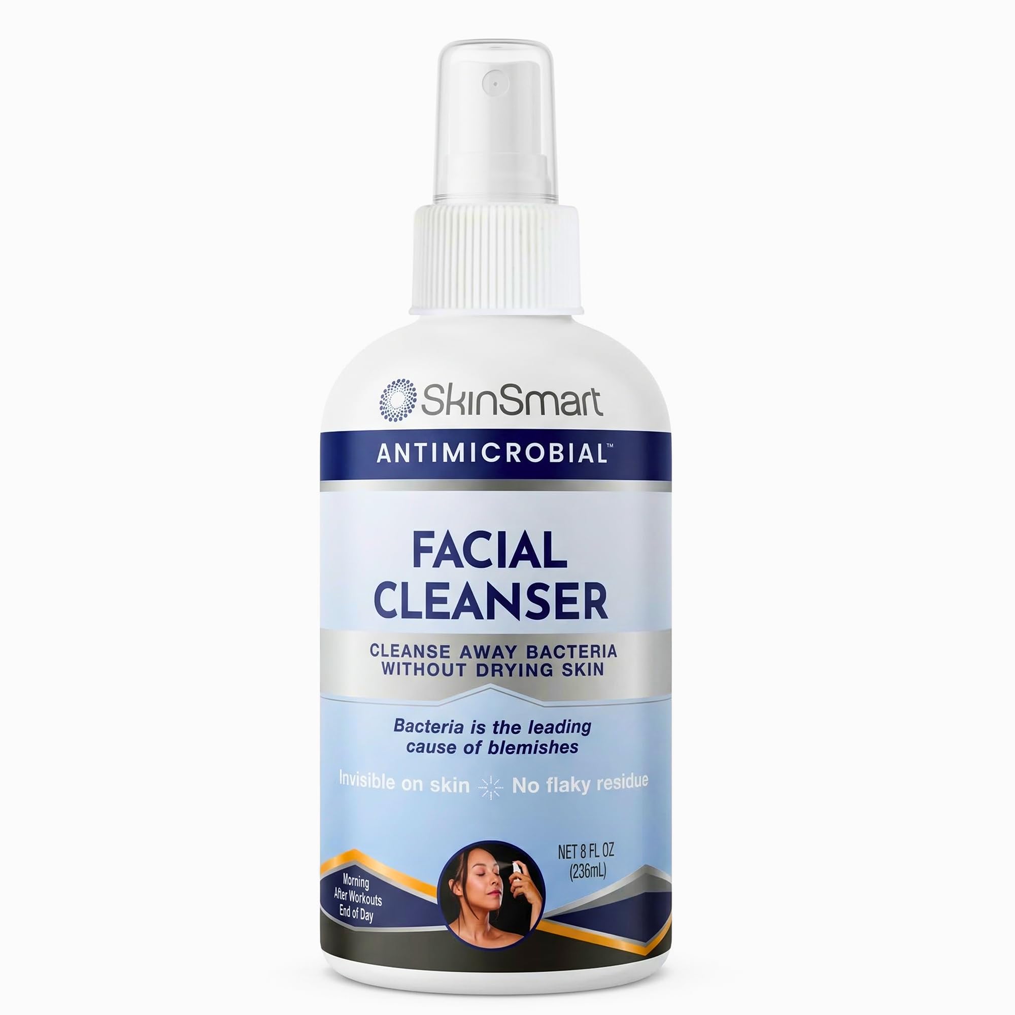 EASY SPRAY facial cleaning for athletes on-the-go; just spray and let air dry, no scrubbing needed