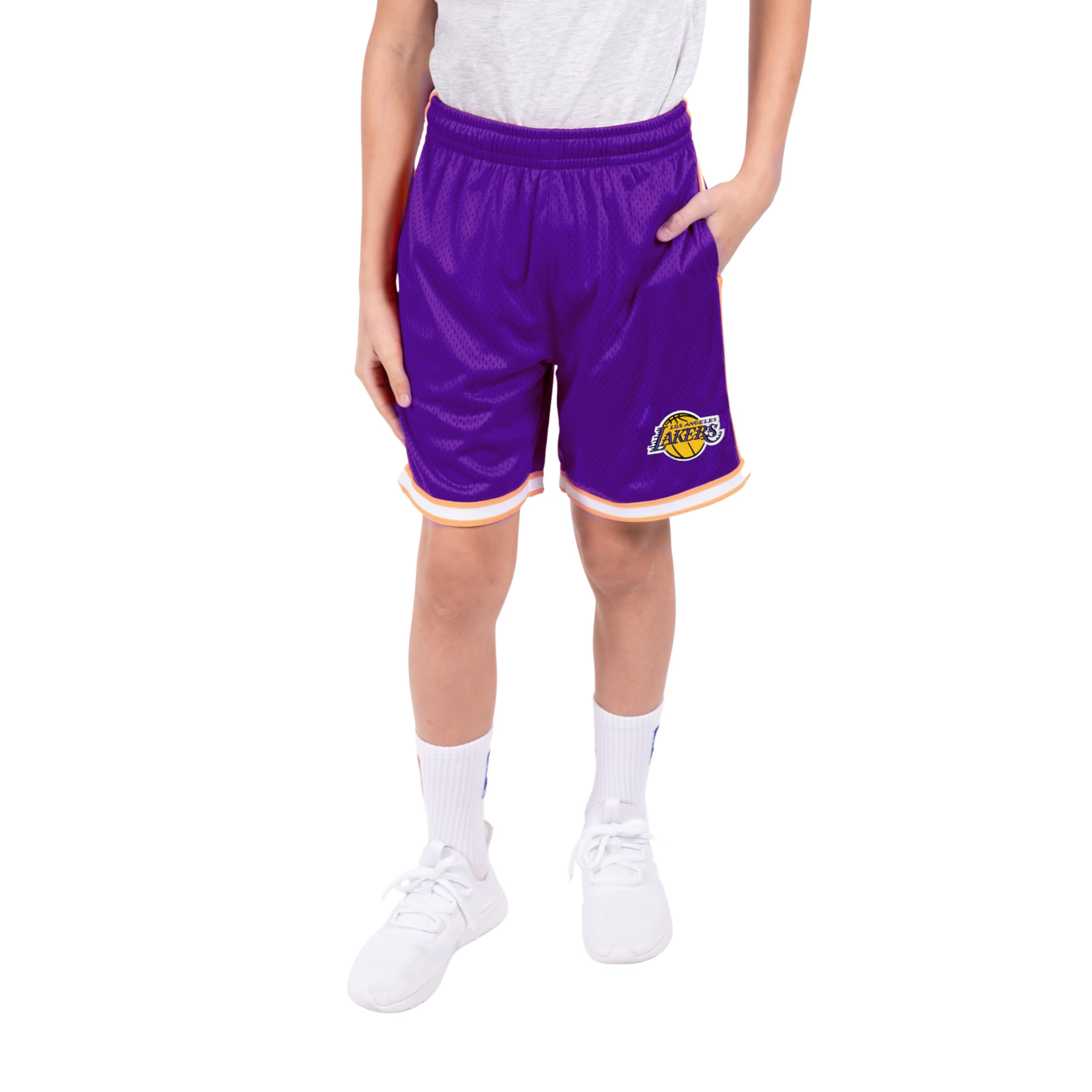 Description ULTRA GAME NBA APPAREL, officially licensed by the NBA, boasts innovative designs with modern graphics and textures. Its ATHLETIC FIT features a tagless neckline and ribbed collar for comfort, while the breathable, moisture-wicking fabric ensures ease of wear on the playground, at school, or daily. The front showcases official NBA team colors with high-quality, screen-printed designs. Designed by fans, Ultra Game caters to NBA enthusiasts' needs. The BOYS ACTIVE KNIT SLAM BASKETBALL TRAINING SHORTS offer a comfortable fit with an adjustable drawcord waistband and 8-inch inseam. The lightweight, breathable polyester fabric keeps you fresh and dry all day. 3D embroidered details feature your favorite NBA team's colors and logo, while team-colored lining and yarn dye rib details provide a trendy, eye-catching style.
