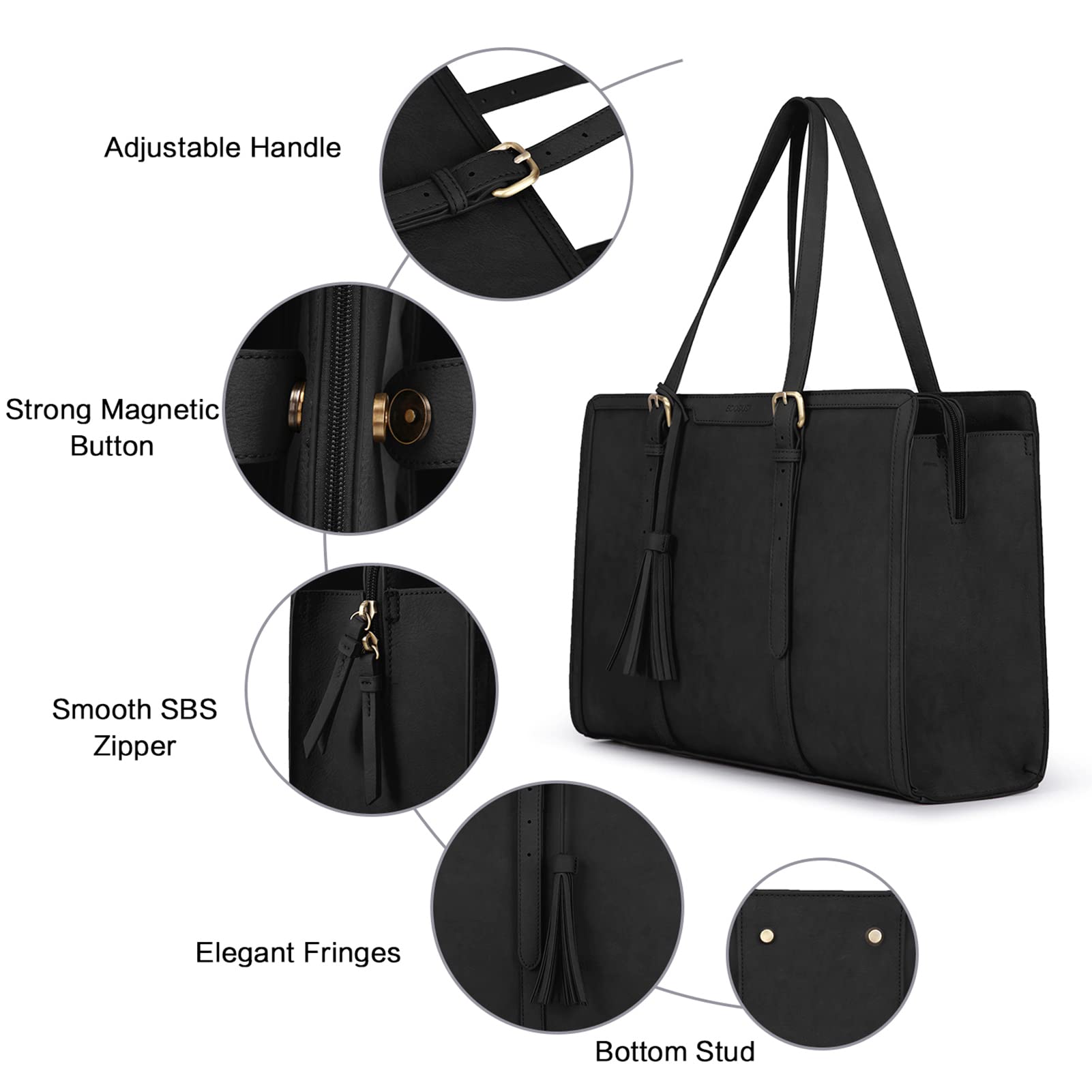 CONVENIENT & STYLISH: Durable and adjustable handles drop range: 9.4"-13.4". Nice size admirably suits women and ideal for daily use like shopping/ meeting/ college/ working/ weekend travel/etc.