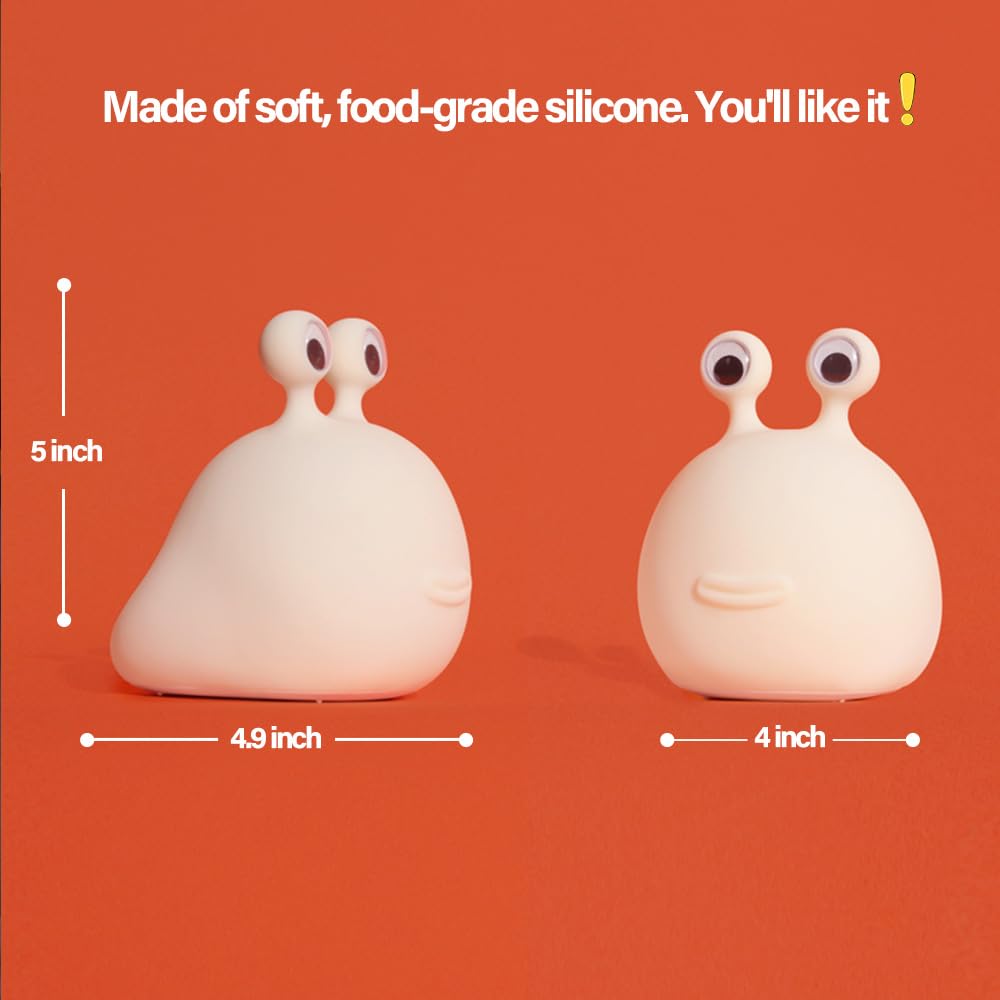 πŸŒγ€Fun Design】Cute slug animal shape, warm lighting, make it easier for you to fall asleep. Eyes touch to turn the light on and off. Press and hold both eyes to adjust the brightness.
