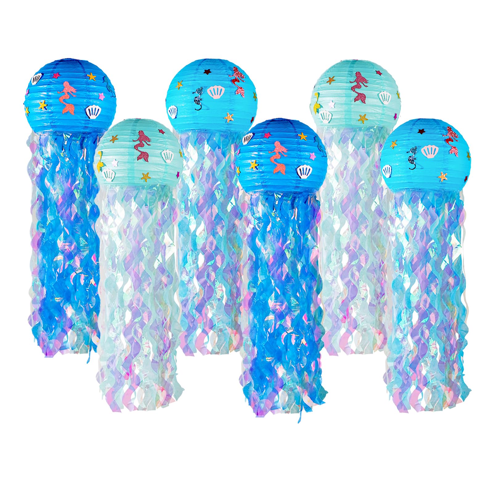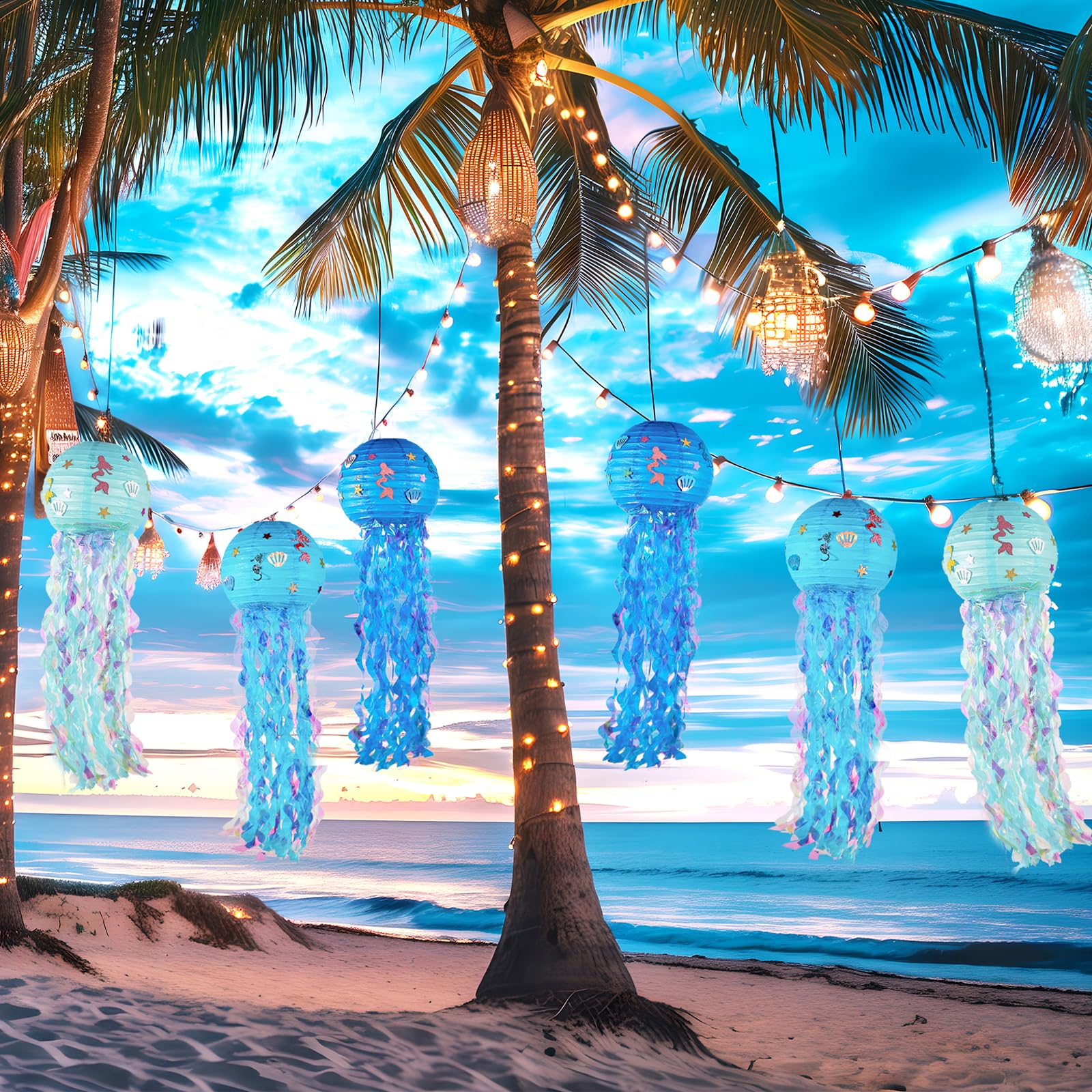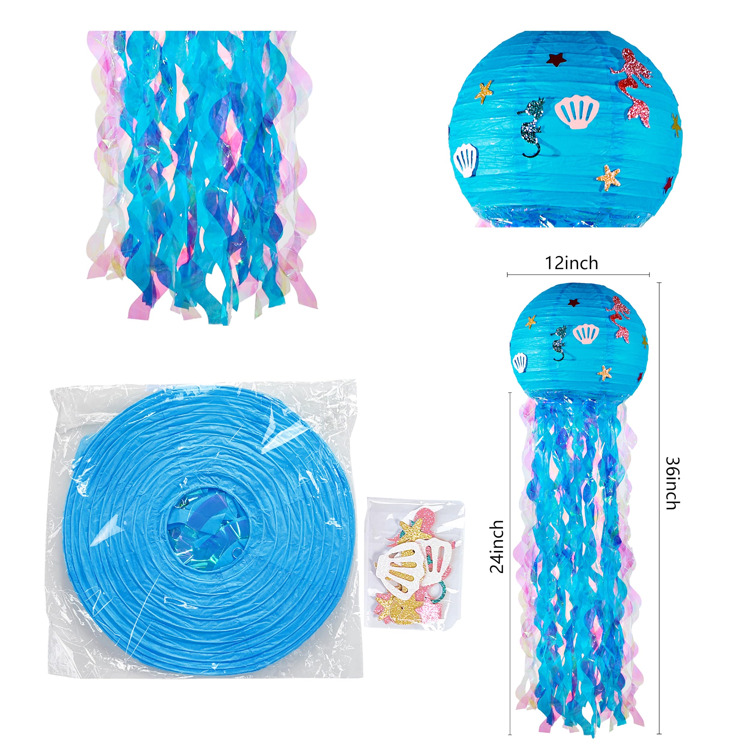 â¨ăHigh-Quality & Stunning Ocean-Themed DesignăMade from eco-friendly, high-quality paper with iridescent streamers, these lanterns shimmer beautifully under light, creating a mesmerizing underwater effect. The detailed sea creature stickers, including mermaids, seahorses, fish, and seashells, add extra charm, making them a stunning focal point for ocean-themed dĂŠcor.