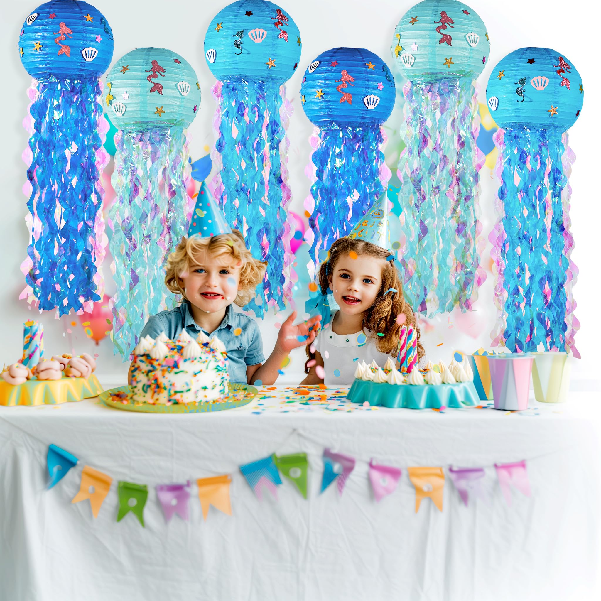 đ§ââď¸ăMagical Mermaid & Under the Sea Party DecorăTransform your mermaid birthday party, under-the-sea celebration, or ocean-themed event with these enchanting blue jellyfish paper lanterns! Featuring adorable mermaid, seahorse, fish, and seashell stickers, these lanterns bring the underwater world to life, making them perfect for kids and adults alike.
