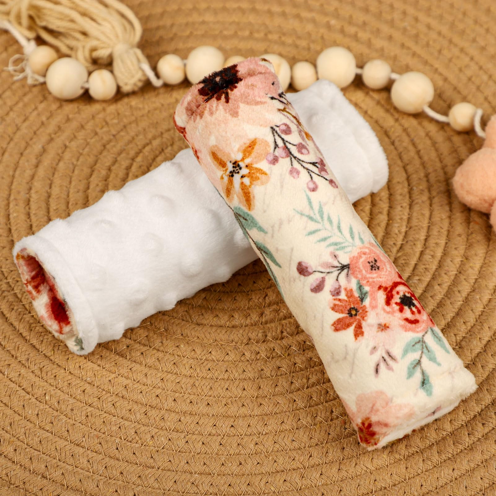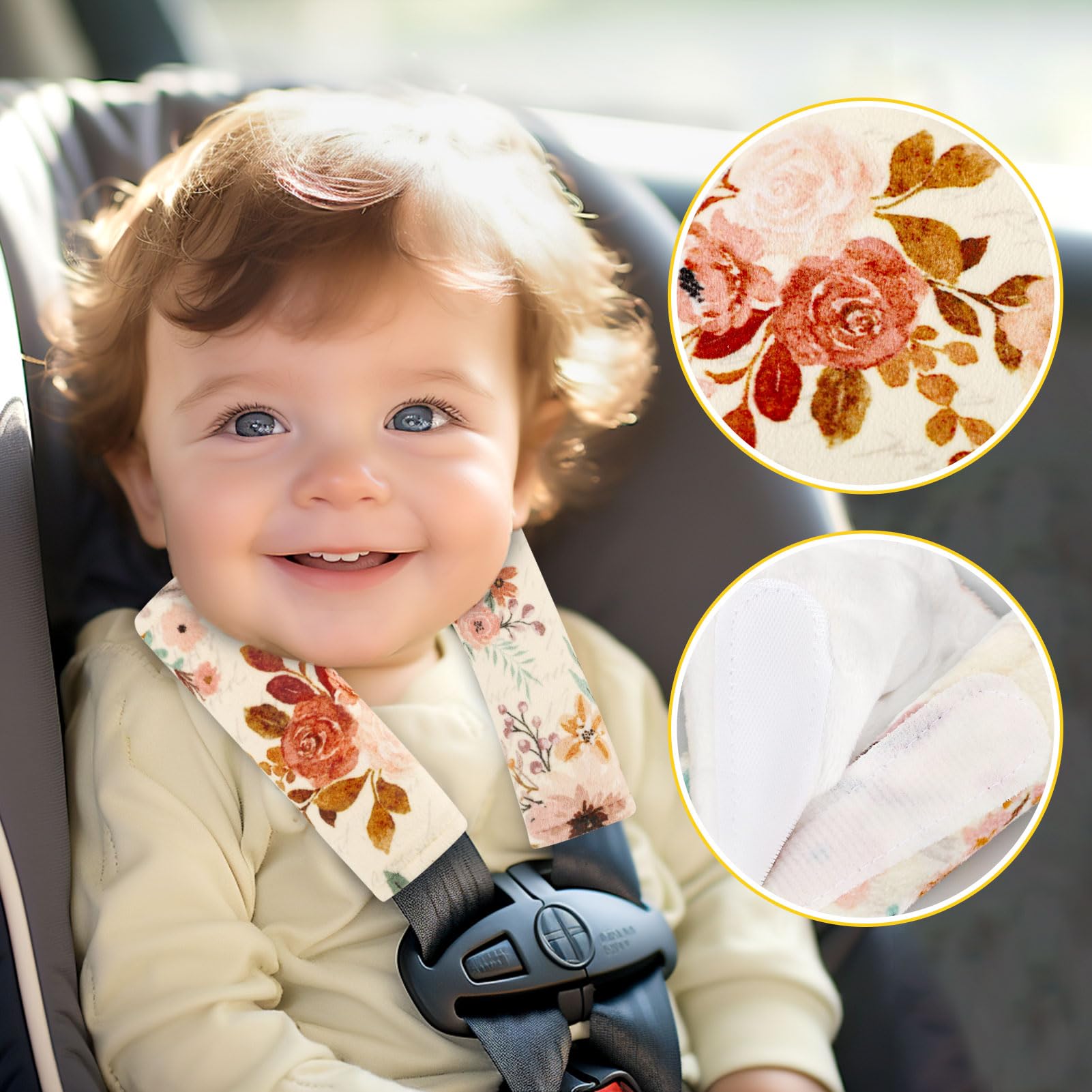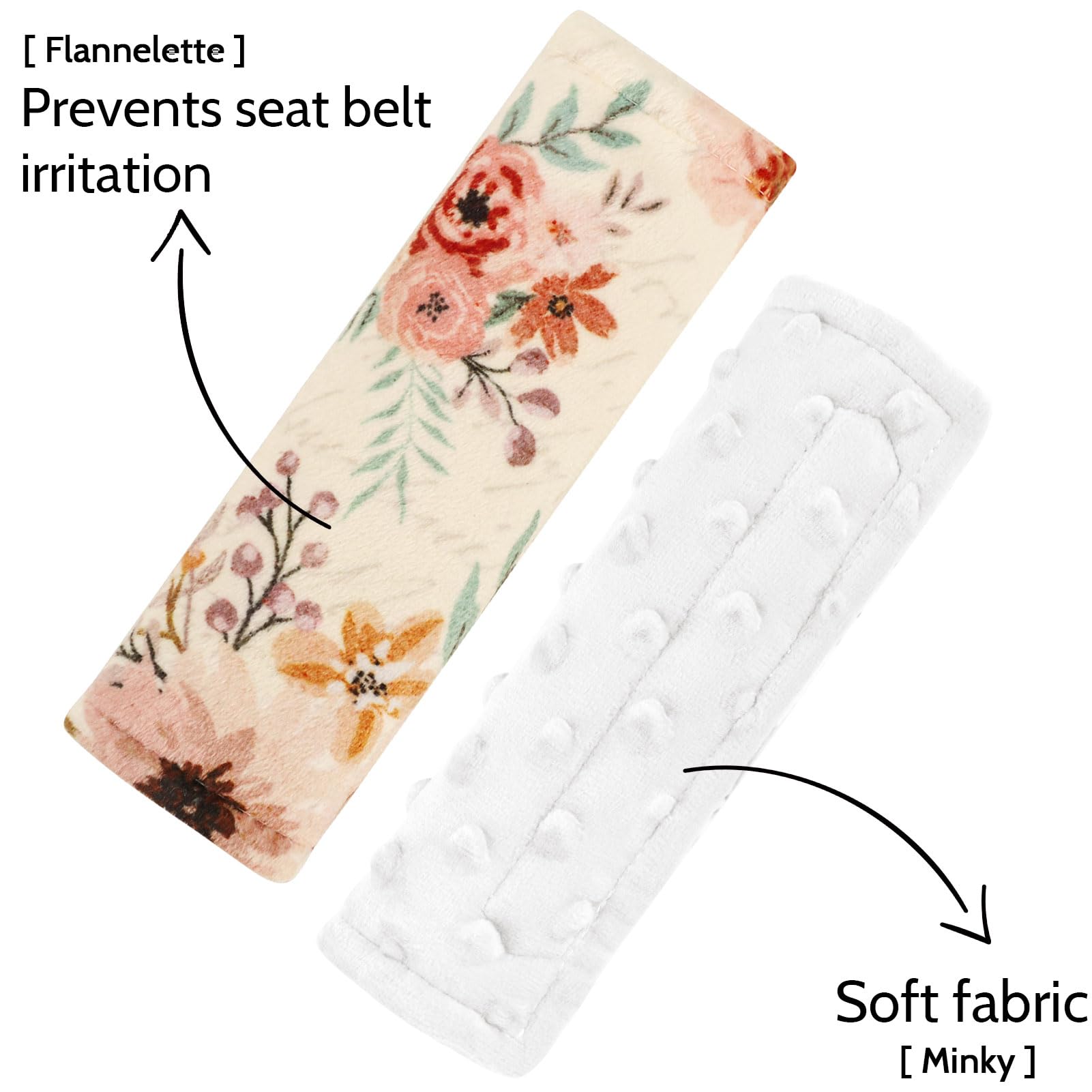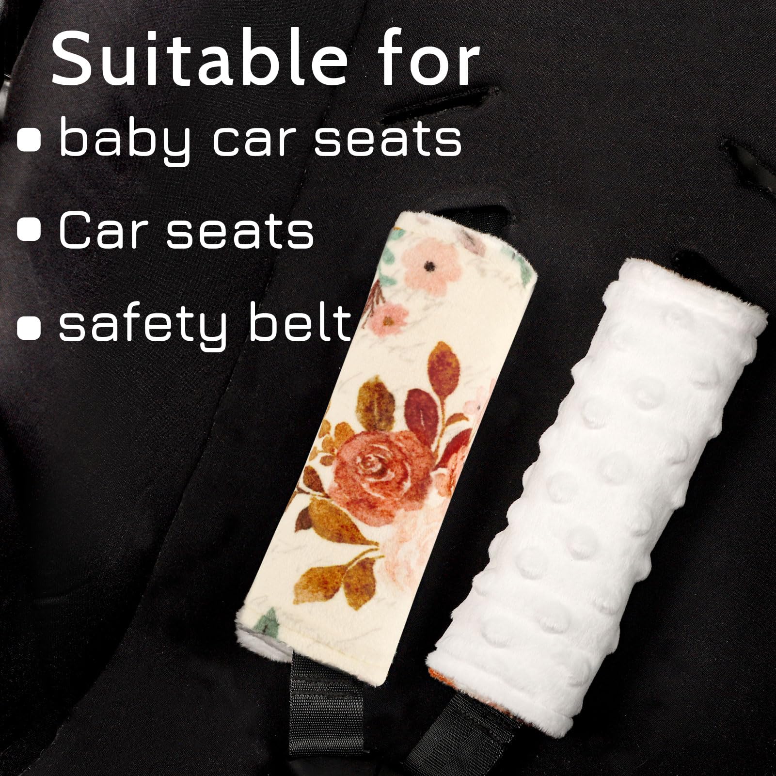 Comfy Protection: Baby car seat strap pads made of flannel and fleece fabric, soft and comfortable; It protect baby face, neck and shoulder from being hurt by the hard seat belt, say goodbye to irritation and red marks on your baby's delicate skin
