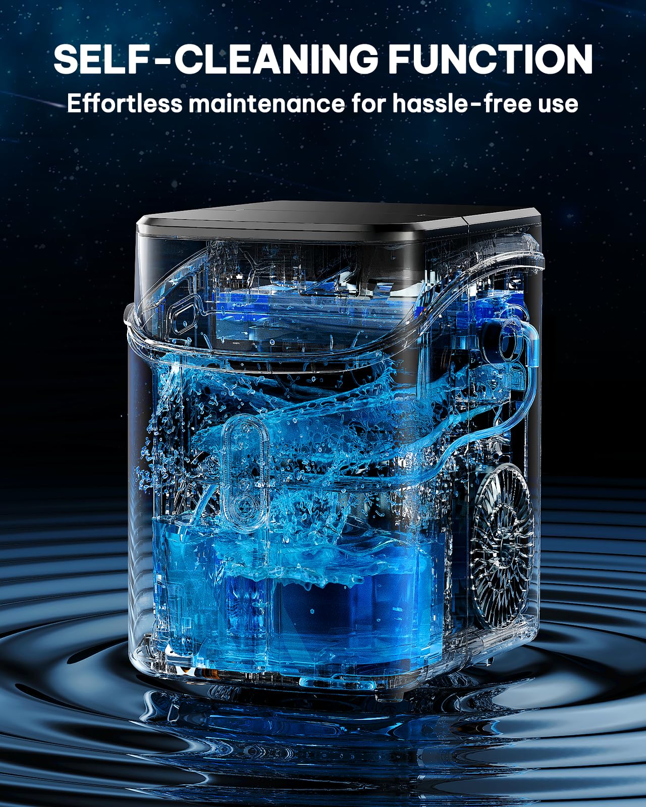 Automatic Cleaning Functionality: Equipped with a comprehensive self-cleaning cycle, this ice maker reduces maintenance effort. After pressing the "CLEAN" button for about 5s, our crushed countertop ice maker will run a 15 mins auto-cleaning. Additionally, the removable top cover facilitates convenient manual descaling and deep cleaning when required.
