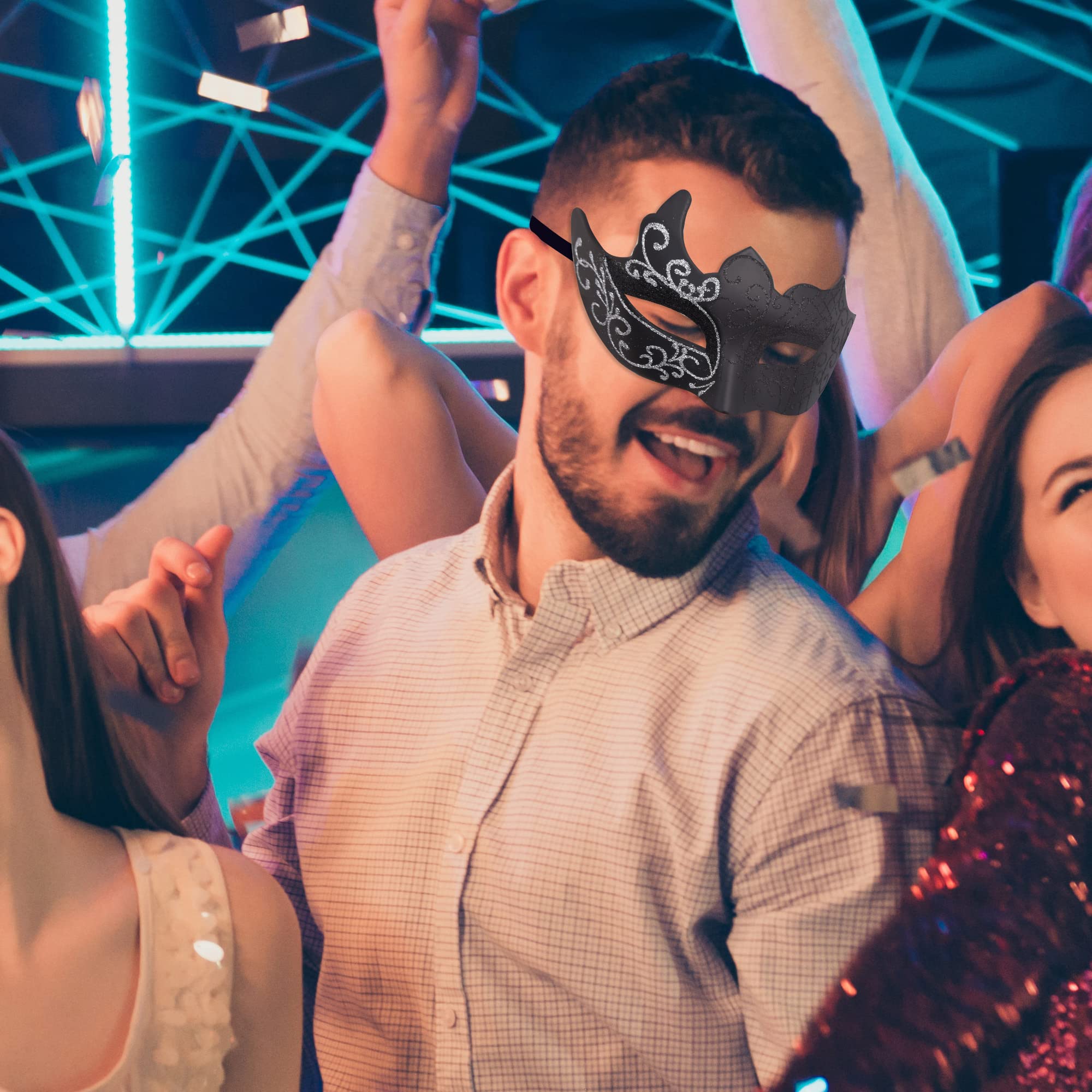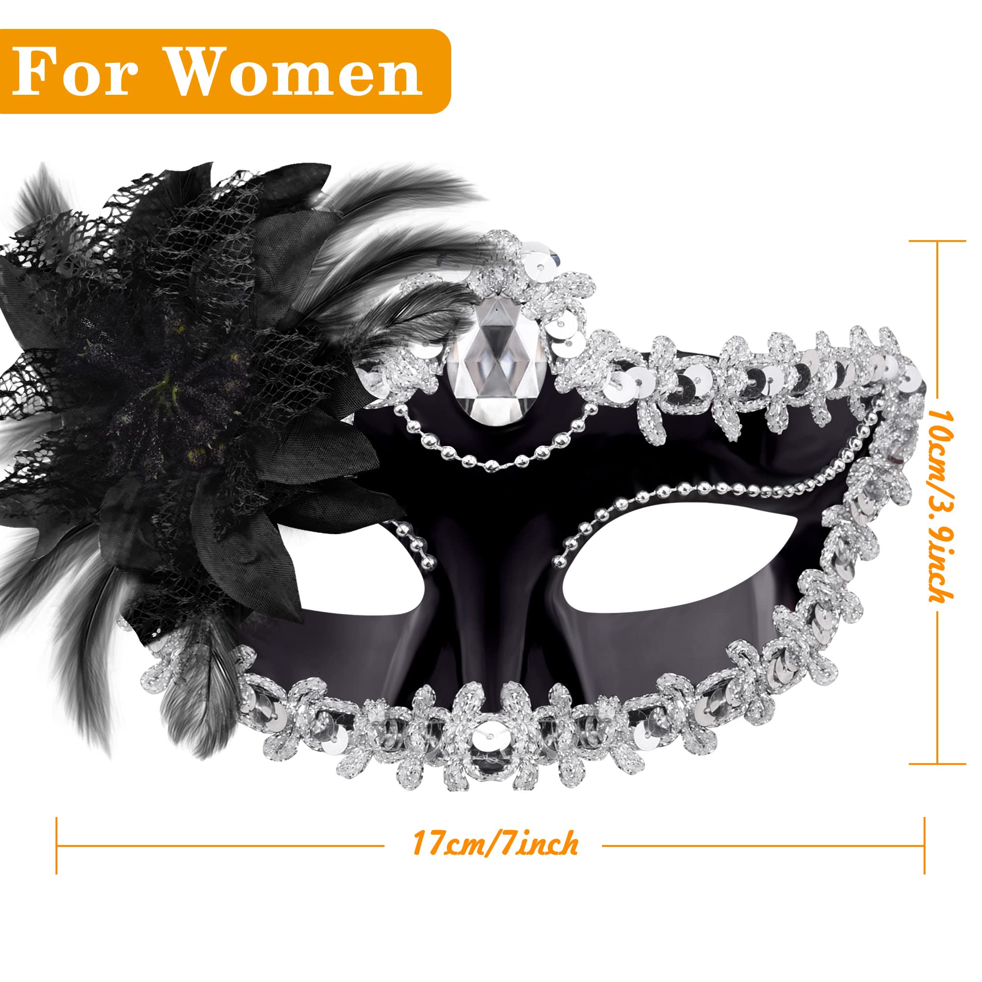 Package includes - there are 2 pcs masquerade masks for couple, the black and silver plastic masquerade mask for men, the electroplating black and silver plastic masquerade mask for women with lace edge, rhinestone and flower decor